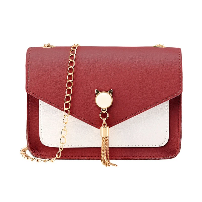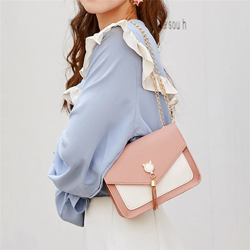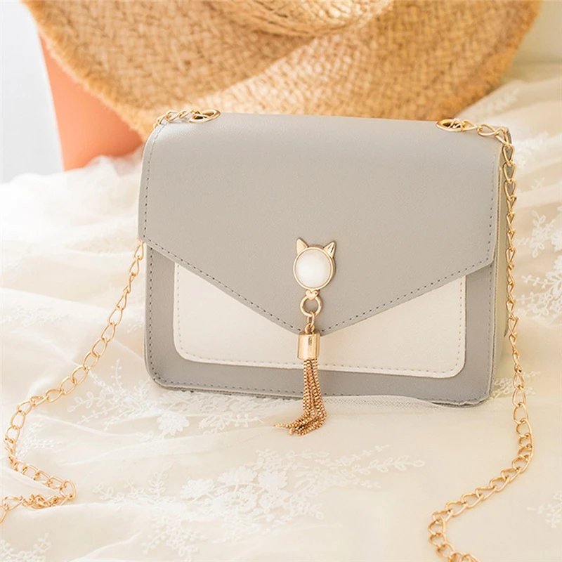 Женская маленькая квадратная сумка на плечо с бахромой, сумка для мобильного телефона с кошкой
