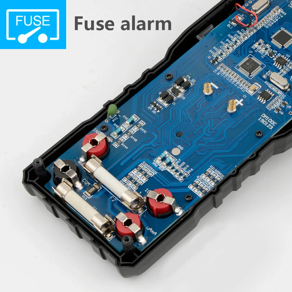 Когда предохранитель сломан, DM100C подскажет предохранитель на экране и подаст звуковой сигнал, чтобы пользователи могли интуитивно найти текущее состояние мультиметра и повысить эффективность обслуживания и осмотра.