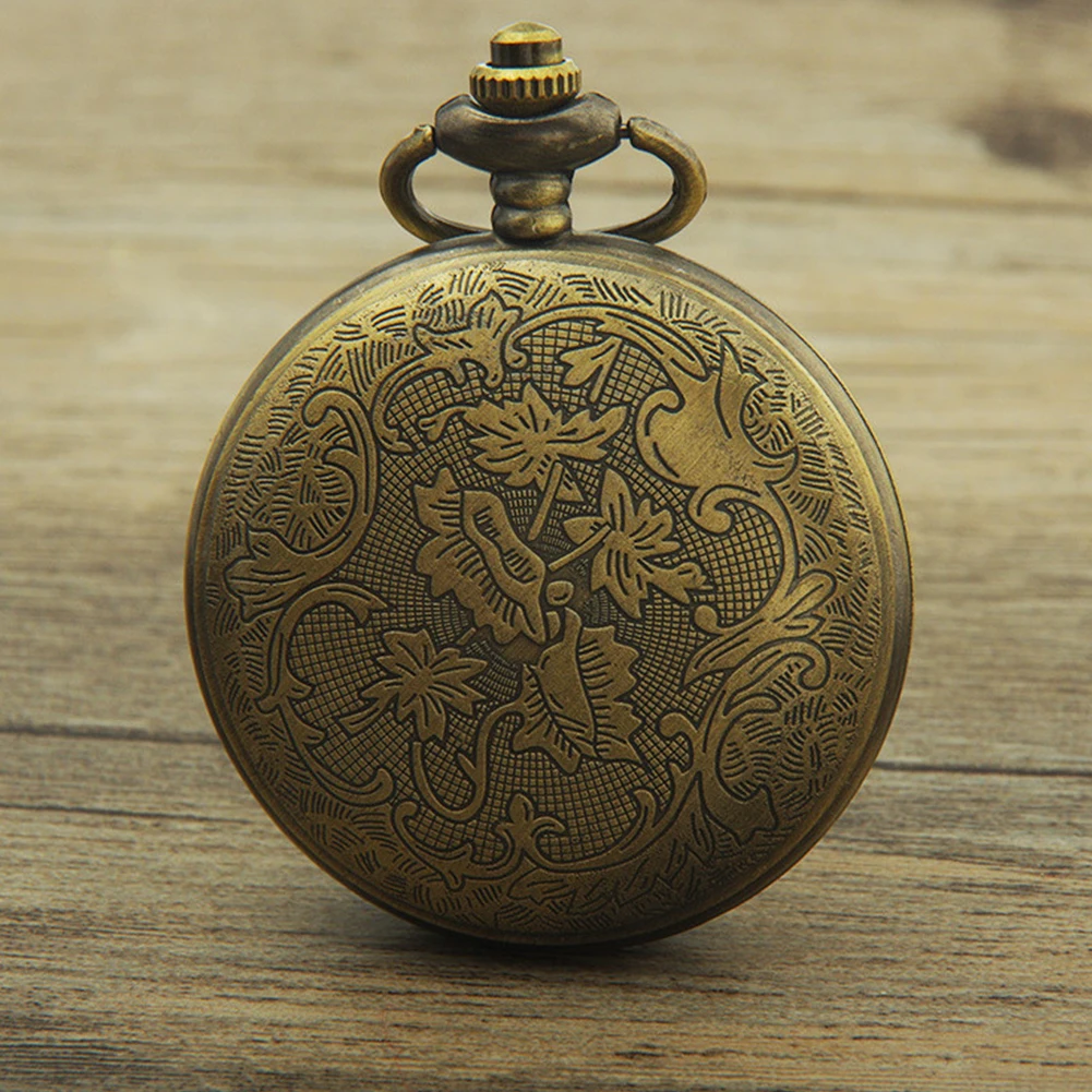 Винтажные Унисекс полые круглые циферблат двойной дисплей кварцевые карманные часы с цепочкой