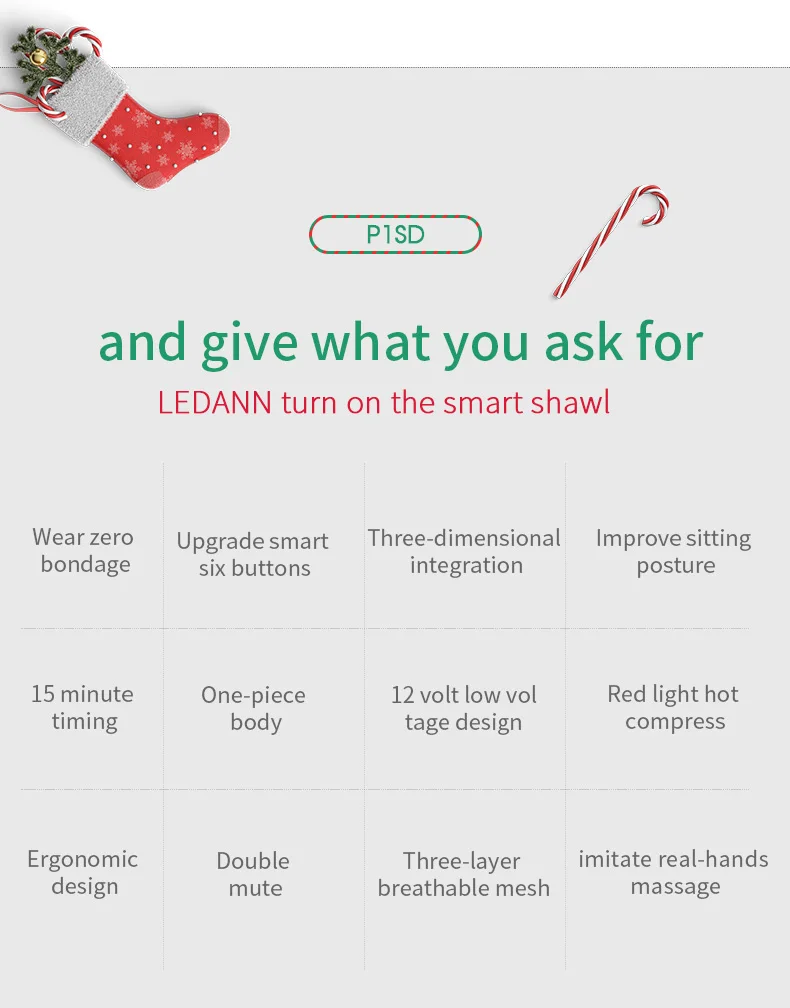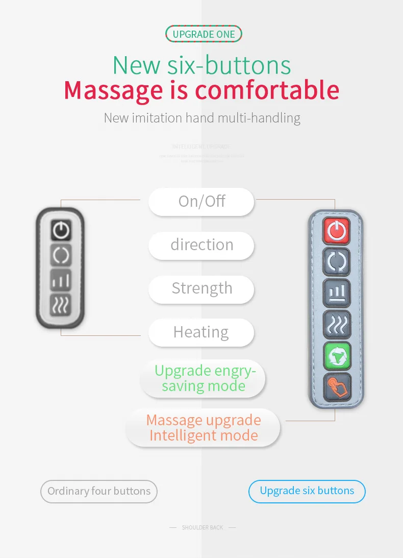 Ноль бондаж Обновление смарт-шесть кнопок Трехмерная интеграция Улучшите сидячую осанку 15 минут времени Цельный корпус 12 вольт низкое напряжение дизайн Красный светильник горячий компресс Эргономичный дизайн Двойное Отключение звука Трехслойная дышащая сетка Имитирует массаж рук