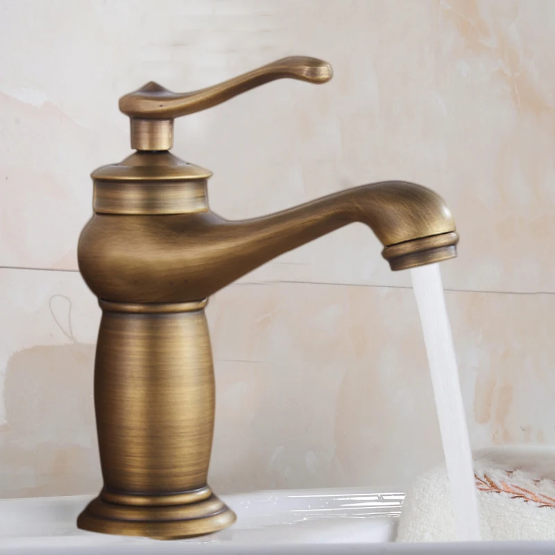 Античный латунный Смеситель для ванной комнаты с одной ручкой, смеситель для раковины из твердой латуни, смесители для горячей и холодной воды, смесители для лица