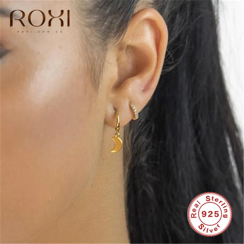ROXI Бохо полумесяц серьга в форме Луны 100% Серебро 925 пробы луна кулон маленькие серьги гвоздики для женщин ювелирные изделия женские серьги-гвоздики подарок