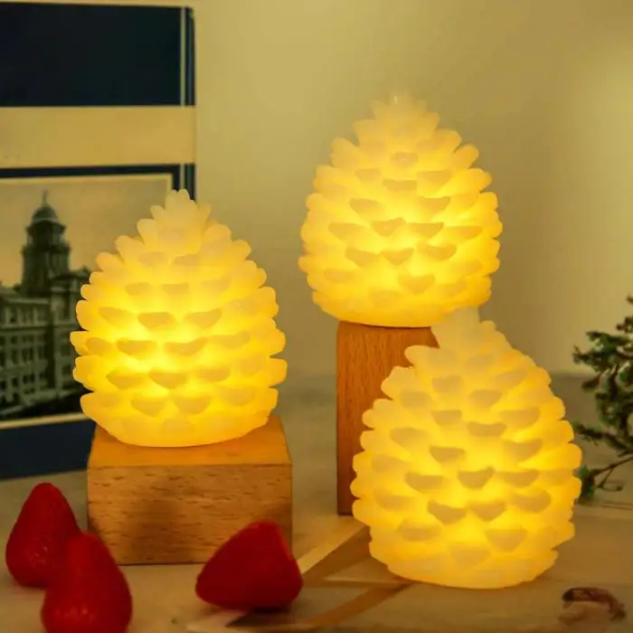 Описание: Особенности: Дизайн с узором из соснового конуса, нежный и реалистичный. Отлично подходит для сбора или добавления теплых ощущений в ваше жизненное пространство и вечерние. Отличный декоративный светильник для вашей гостиной, спальни или другого внутреннего пространства. Питание от кнопки, легко перемещается и переносится. Материал: основной корпус изделия-пластик, внешний слой покрыт парафином. Параметры: Аккумулятор: поставляется с аккумулятором кнопки Функция: всегда яркий Обратите внимание: Изделие имеет только один сосновый конус, а базовый деревянный коврик не входит в комплект.
