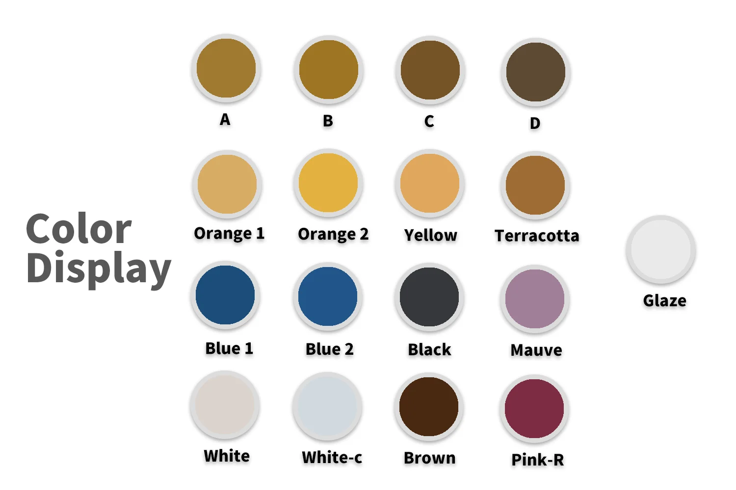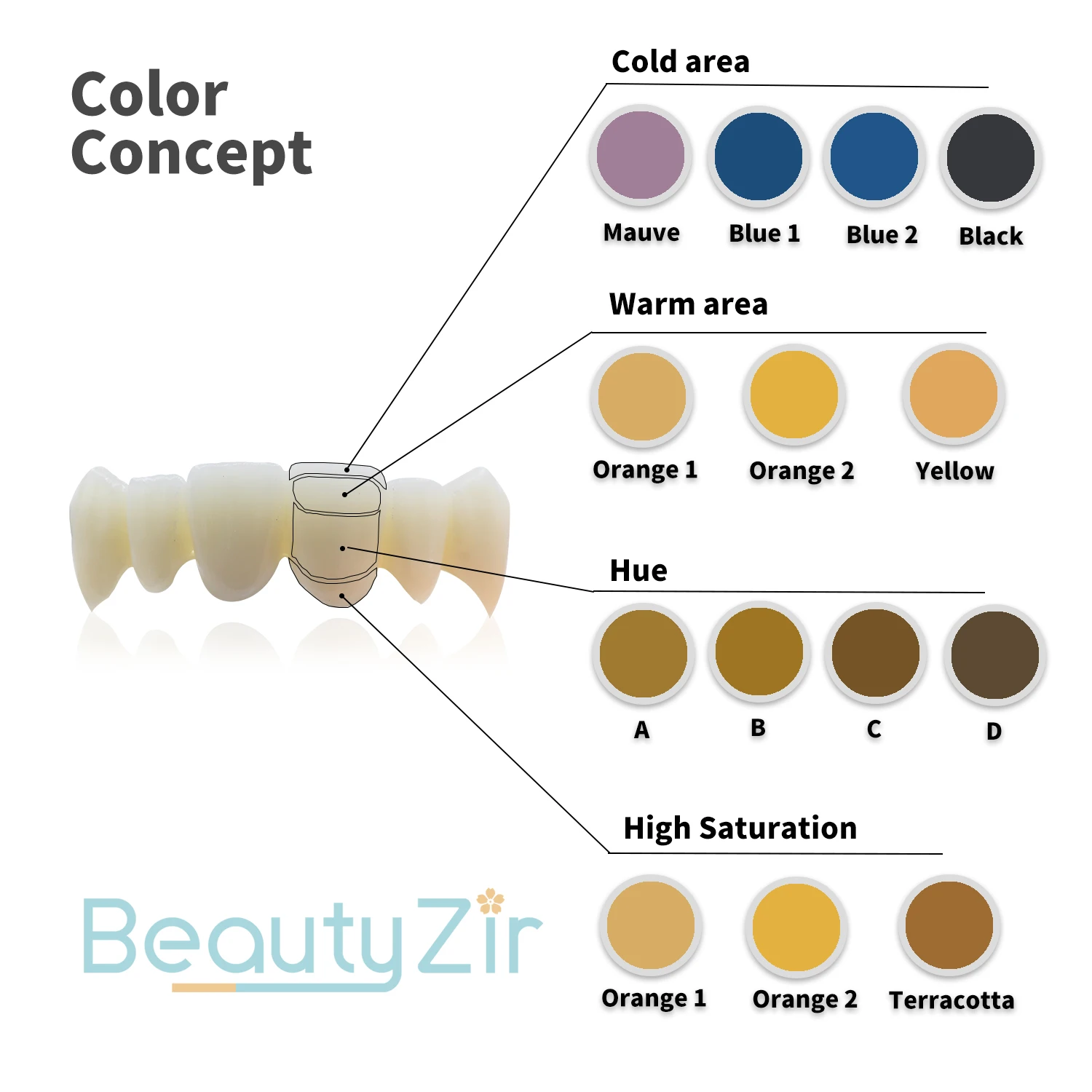 1. Простота в эксплуатации 2. Каждая бутылка пасты содержит глазурь, не нужно глазурь самостоятельно 3. Различные цвета на выбор 4. Одноразовое спекание становится глянцевым 5. Отличное люминесцентные лампы 6. Идеальное сочетание с цирконием