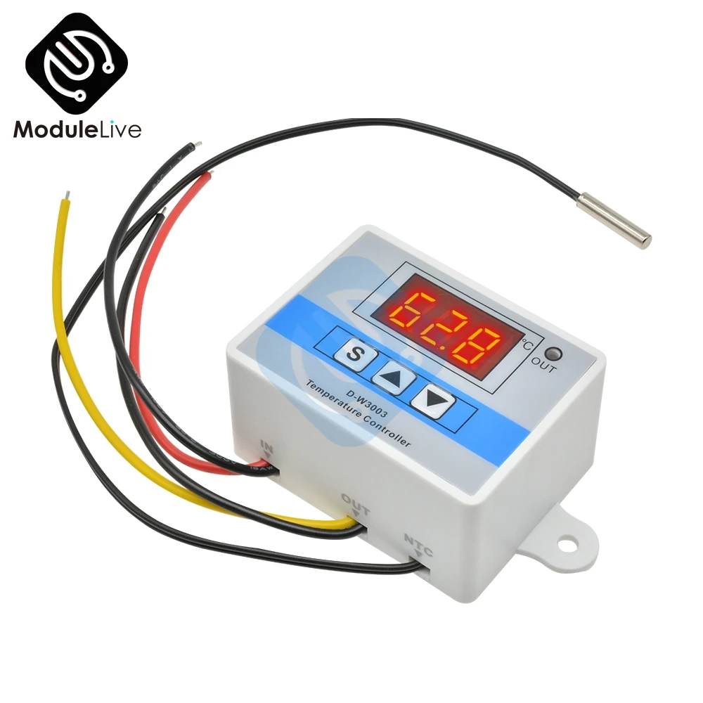 Диапазон температур:-30-110 ° Размеры: 48,5x40 мм Режим контроля температуры: вкл/выкл Разрешение: при температуре 0,1 °, разрешение-9,9 ~ 99,9, другой температурный сегмент-1 ° Точность управления: 0,1 ° Точность гистерезиса: 0,1 ° Частота обновления: 0,5 с Высокотемпературная защита: 0-110 ° Напряжение питания: 12 В постоянного тока Статический ток: ≤ 35ма, притягивающий ток ≤ 65ма Выходное напряжение: 12 В постоянного тока Выходная мощность: 20А реле Вход измерения: NTC (10 K 0.5%) водонепроницаемый датчик Экологические требования:-10-60 °, влажность 20%-85% Инструкции по использованию: Подключите блок питания и нагрузку, вы можете поставить к контроллеру, Отображается как измеренная температура, Нажмите кнопку SET, дисплей мигает температуру, Нажмите-для установки желаемой температуры, После установки нажмите кнопку SET, чтобы подтвердить возврат, Контроллер автоматически выполняет реле, установив выключение! Освещение, светодиодный описание состояния: Индикатор: выключение реле выключено, всегда означает, что реле закрыто. Светодиодный: показывает, что датчик открывается, показывает? HH находится вне диапазона, термостат будет должен закрыть реле, дисплей --- как высокая температура защиты. Посылка включает в себя: 1 х W3003 светодиодный цифровой термостат регулятор температуры