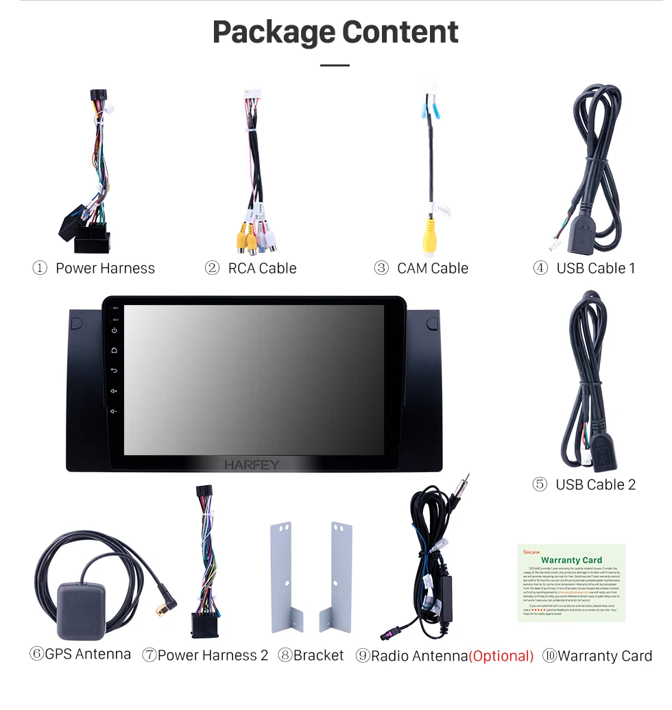 HarfeyДля 1995 1996 1997 1998 1999 2000 2001 2002 2003 BMW 5 серии E39/X5 E53Автомобильный сенсорный экран 9 дюймов, Android 9,1, HD, AUX, Bluetooth, GPS, радио, поддержка SWC Carplay