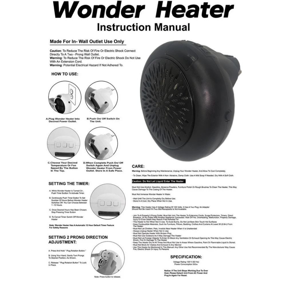 [Программируемый таймер 12 ч] подключаемый ручной обогреватель имеет функцию таймера, таким образом, вы можете установить рабочее время нагревателя в пределах 1-12 часов, а затем автоматически выключить в конце времени. Для взрослых или детей это точно безопасно.