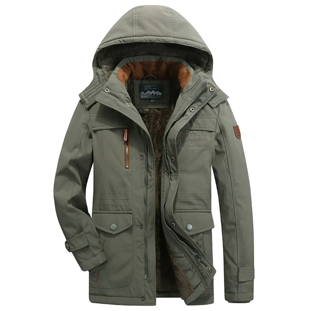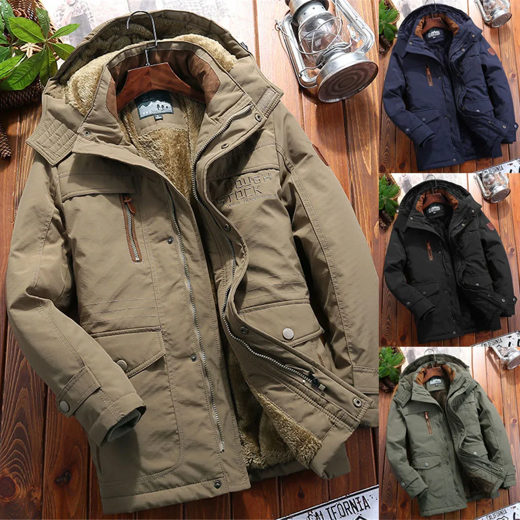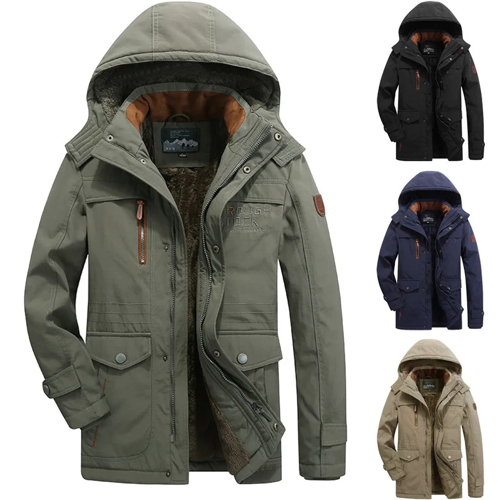 Зимняя мужская длинная бархатная Толстая куртка с капюшоном
