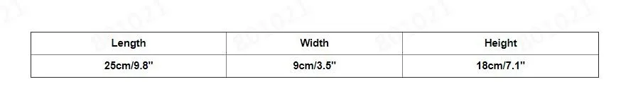Размер:25См (Д) x9см (Ш) x18см (В)/9,8 (Д) x3.5 (Ш) x7.1 (в)"
