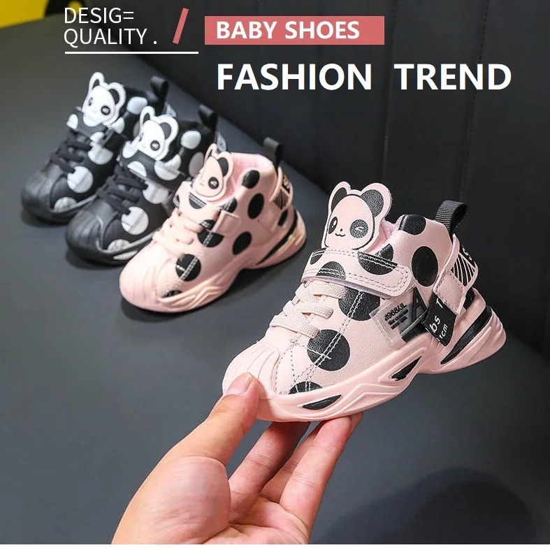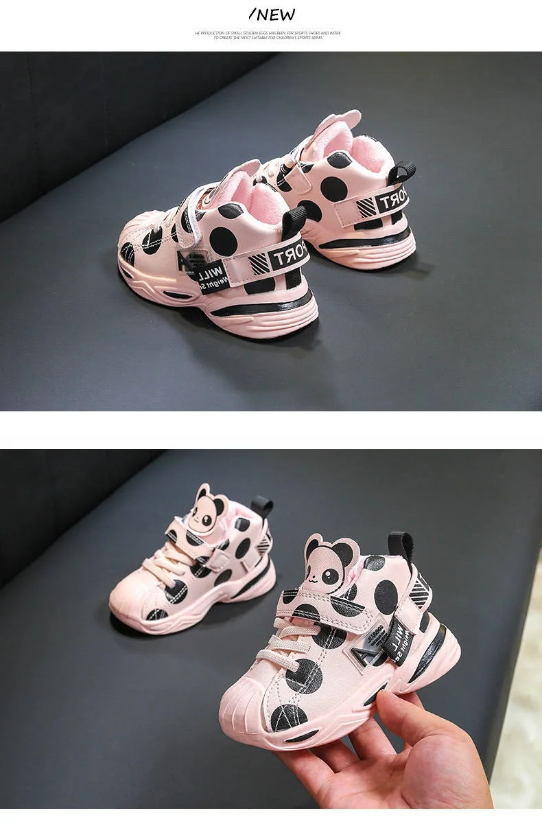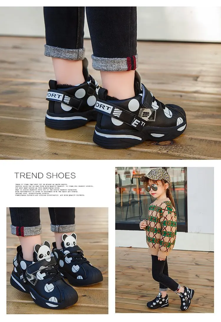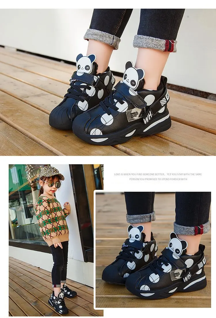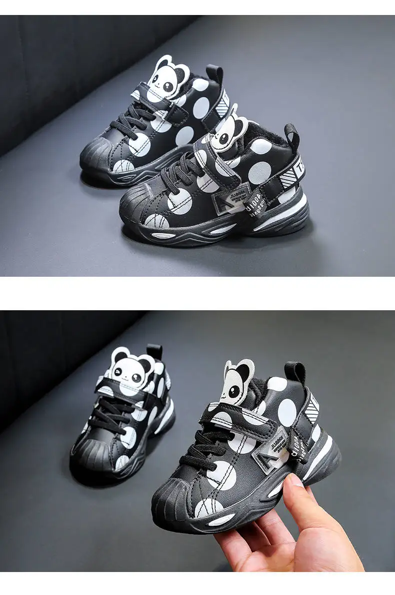 Обувь для девочек; 2020 модные зимние кроссовки для мальчиков; Обувь для малышей; Детские Плюшевые кроссовки из искусственной кожи с пандой для бега; Детская обувь; Кроссовки для девочекРазмер: 21-30