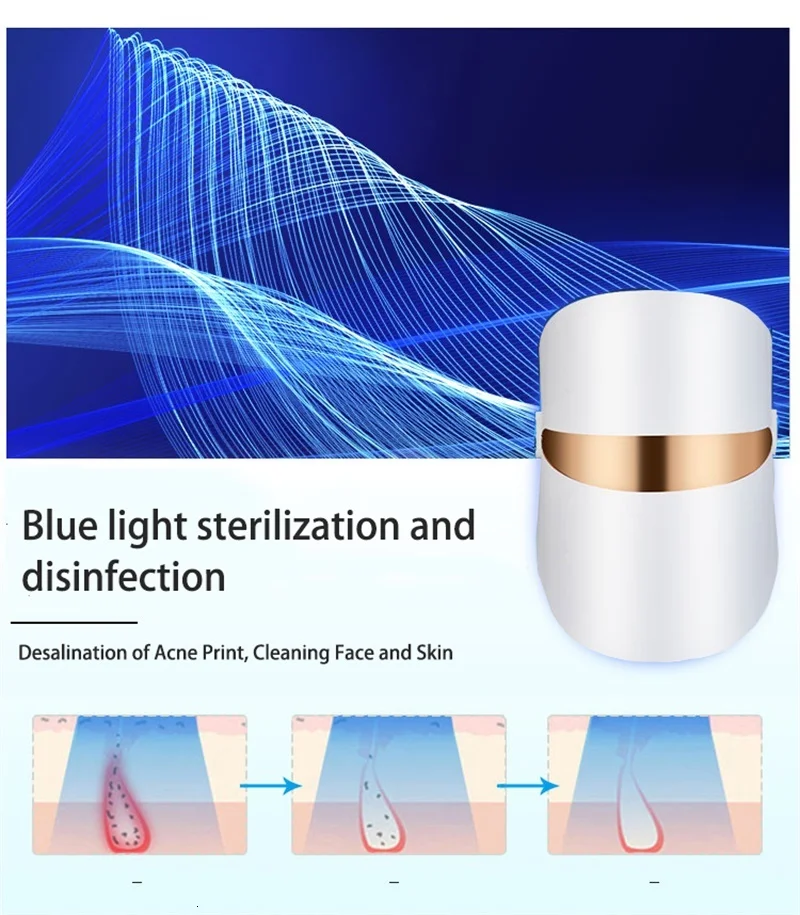 3 цвета светодиодный маска может решить проблемы с кожей. Пример лечения угревой сыпи и восстановления шрамов от угревой сыпи.