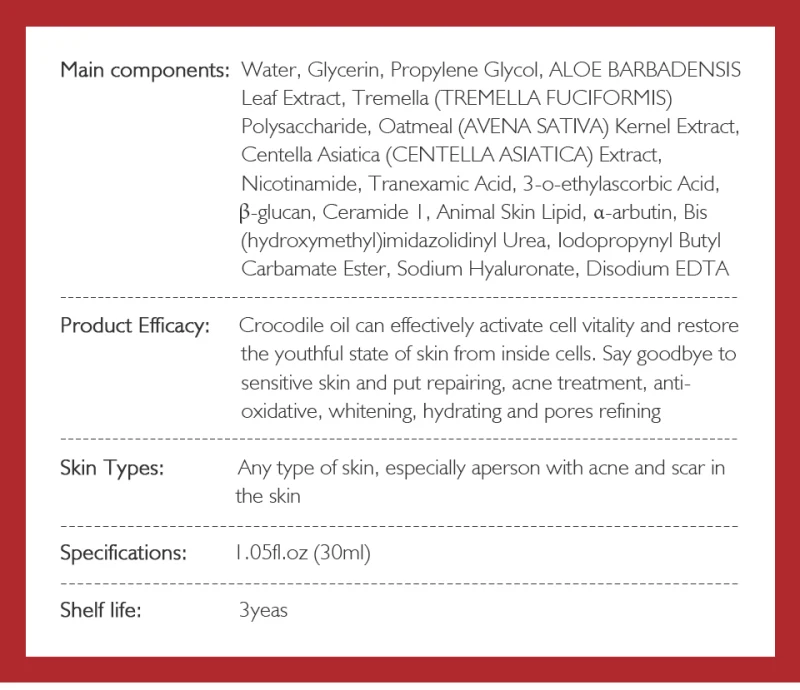 Крокодиловое масло может эффективно активировать жизненную силу клеток и восстановить молодость кожи внутри клеток.
