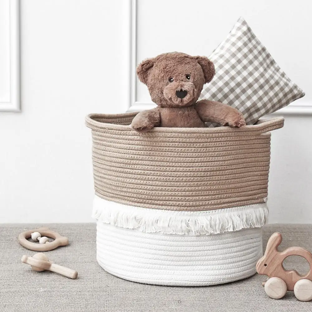 4. Полезная корзина для хранения: Эта корзина для хранения имеет ручку с красивым узлом, так что наша детская корзина для белья может
