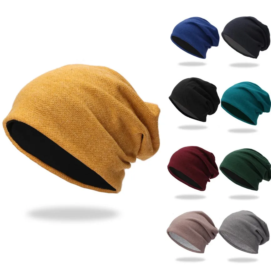 Хлопковые шапки для мужчин и женщин, мешковатые зимние теплые вязаные Вязаные Лыжные шапки с черепом, утолщенные уличные шапки