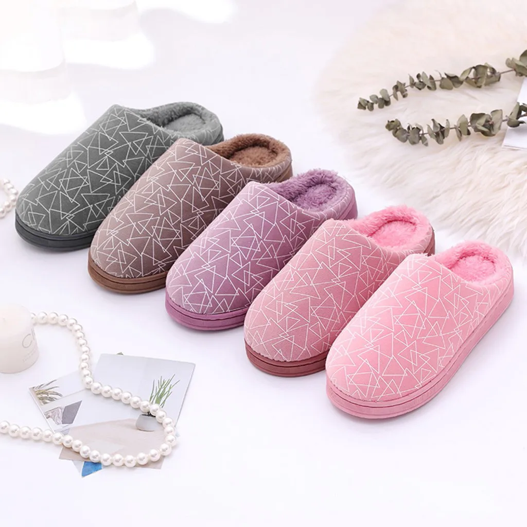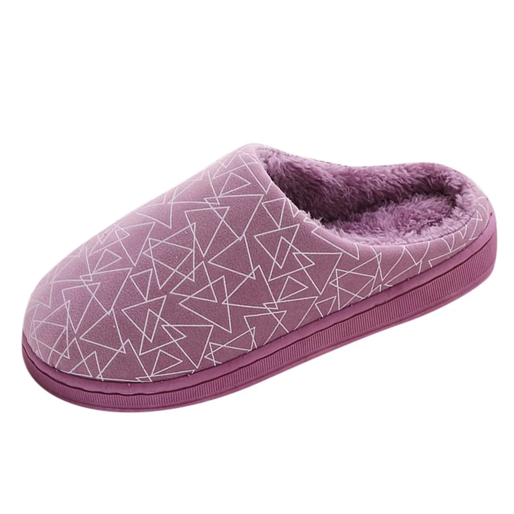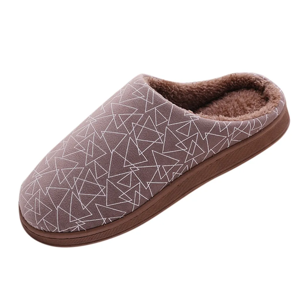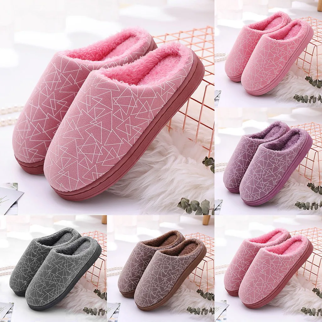 Женские и мужские теплые домашние тапочки из флока с геометрическим рисунком; Домашняя обувь