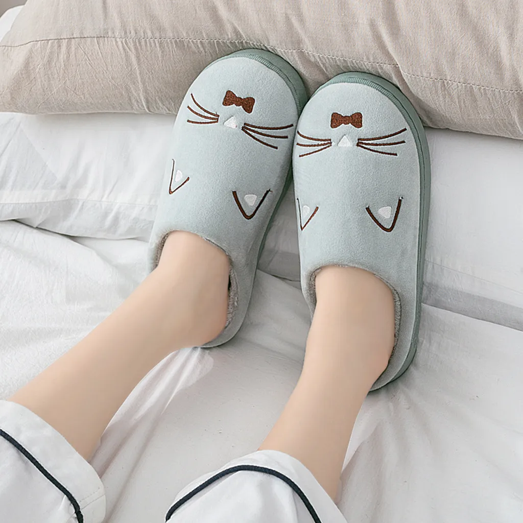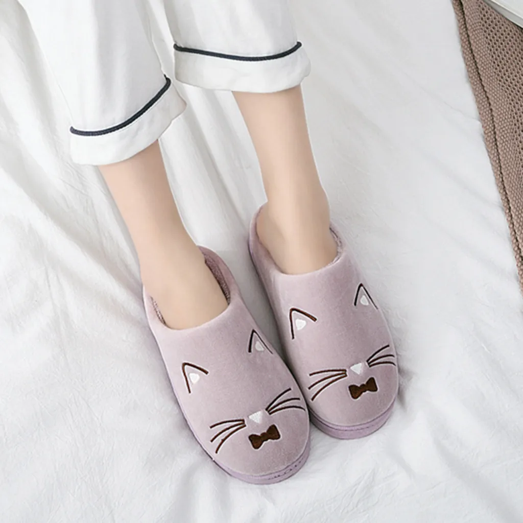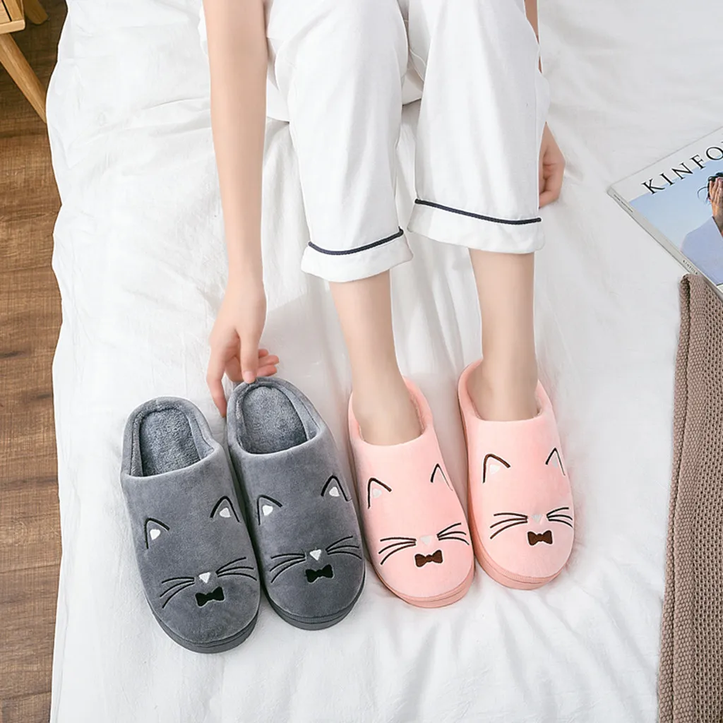 Женские и мужские теплые домашние тапочки с рисунком кота; Домашняя обувь