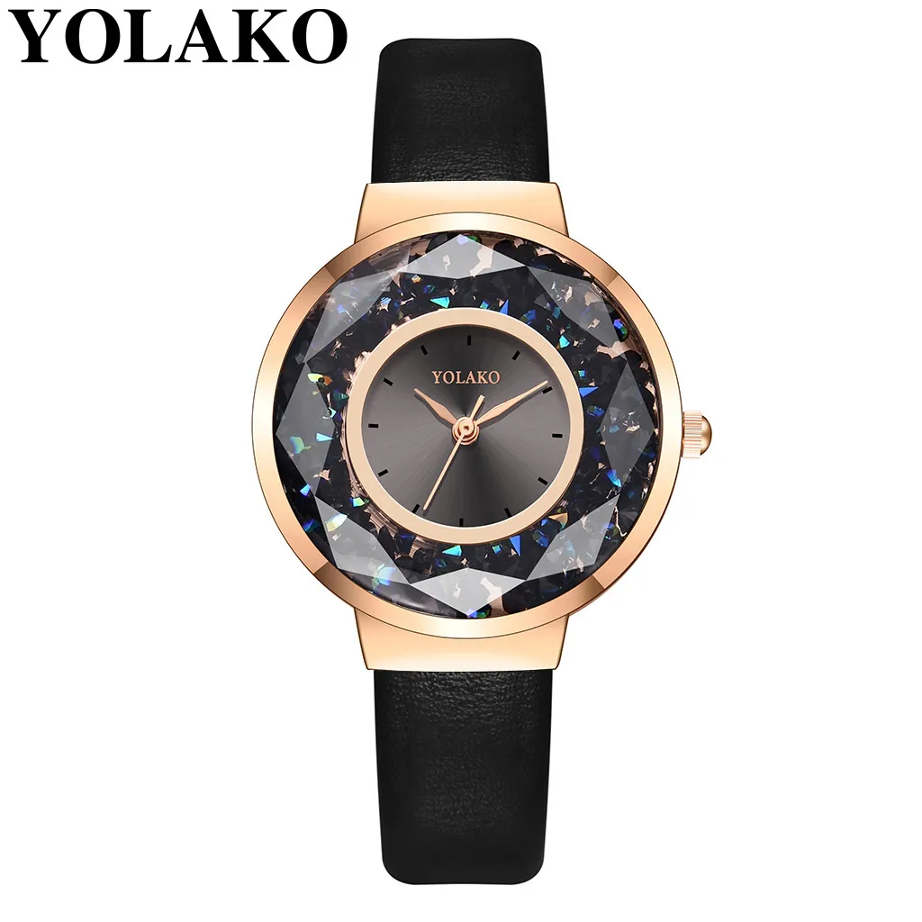YOLAKO Женские повседневные кварцевые часы с кожаным ремешком Newv ремешок аналоговые наручные часы