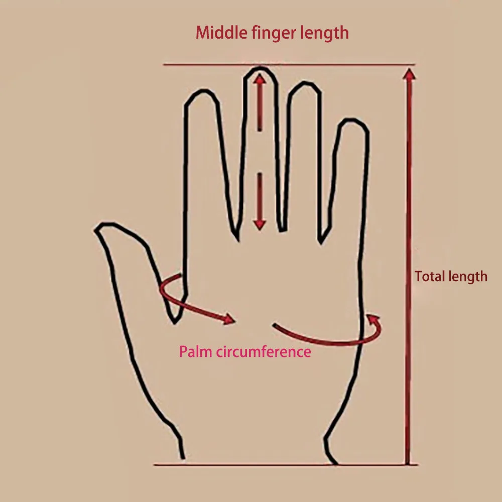 1 пара перчаток Размер Для средней длины пальца Для окружности ладони Общая длина Бесплатно <9,5 см/<3,74" 15 см-22 см/5,91 "-8,66" 22,5 см/8,86"