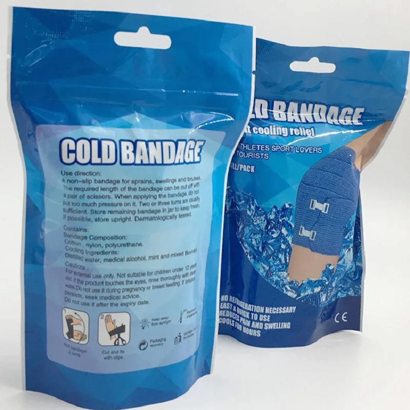 Инструкции по использованию ледяной повязки: 1. Откройте упаковку и выньте влажную повязку; 2. Поместите ее вокруг поврежденной области. Эластичность повязки не слишком ограничена. Используйте достаточно эластичность, чтобы обеспечить комфортное сжатие. 3. Ледяная повязка свободна и безопасна. 4. Убедитесь, что поднимите поврежденную часть тела и Расслабьтесь. 5. Диапазон обработки остынет в первые 10-15 минут, и охлаждающий эффект длится до 2 часов. 6. Рекомендуется проверять поврежденную часть каждые 15 минут, если есть какое-либо обесцвечивание или немедленно остановить лечение на покраснение.