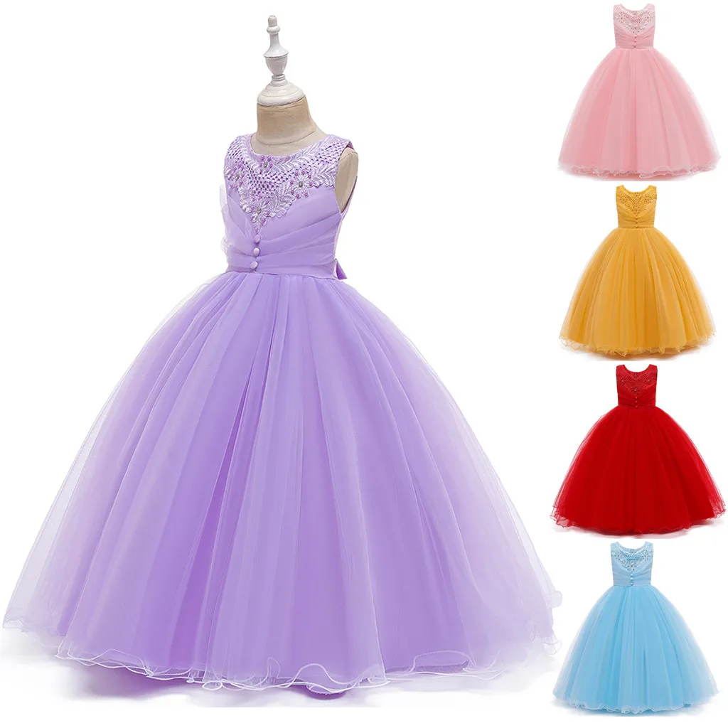 Платье принцессы с цветочным узором для девочек; Вечерние Детские Свадебные торжественные платья-пачки