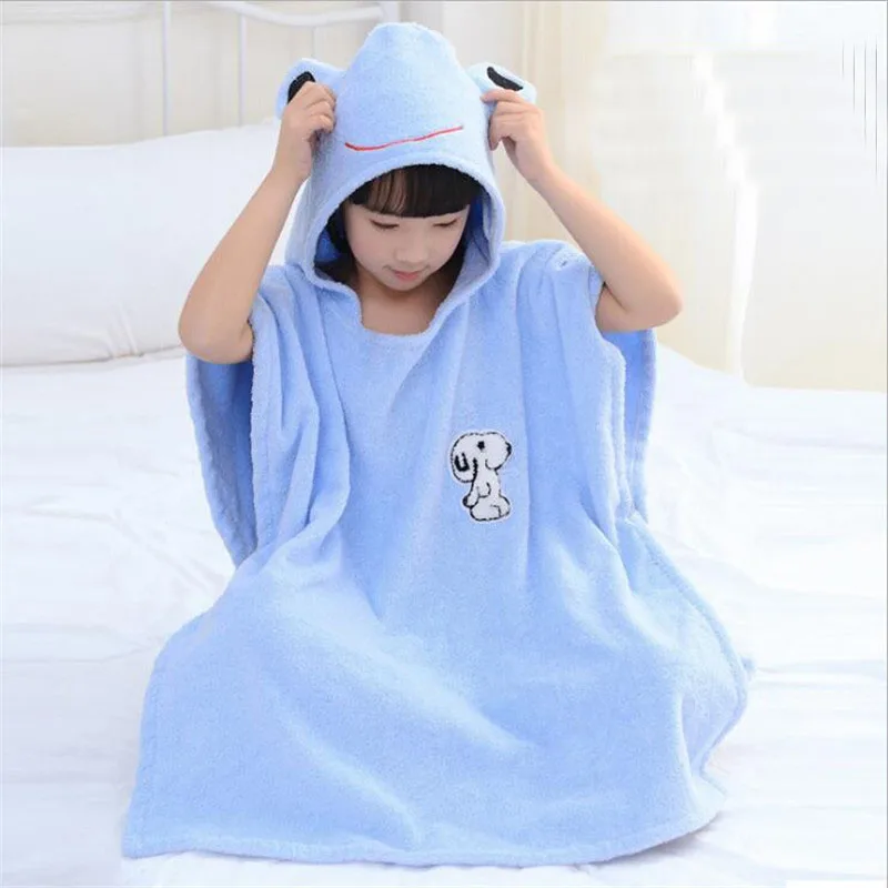 Детский хлопковый Халат, пончо с капюшоном для мальчиков, фланелевый банный халат для девочек, roupao, синие свободные длинные пижамы, банные халаты, одежда для сна