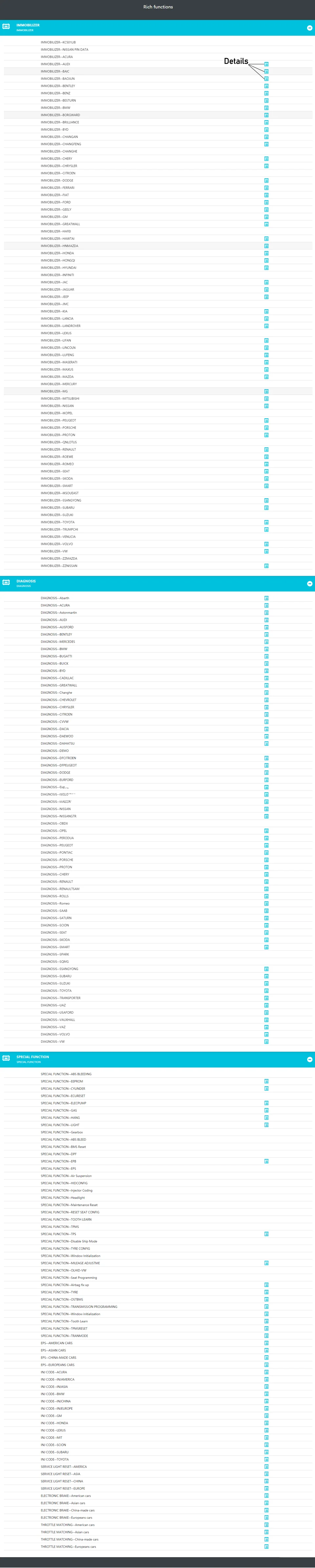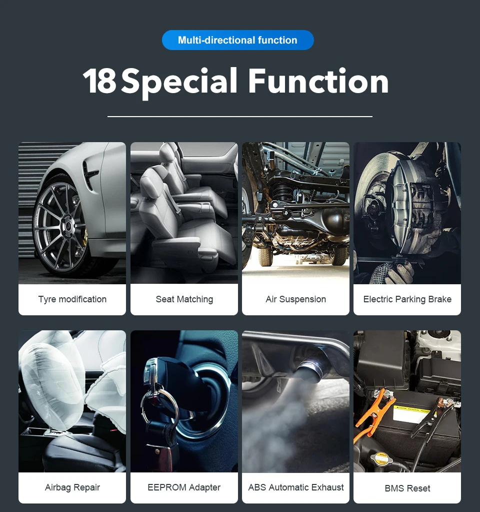 Включает: ABS-система, система двигателя, SAS-система, система TPMS, IMMO-система, аккумуляторная система, система подачи масла, Система SRS, система DPF, система кондиционирования воздуха, система передачи и т. д.