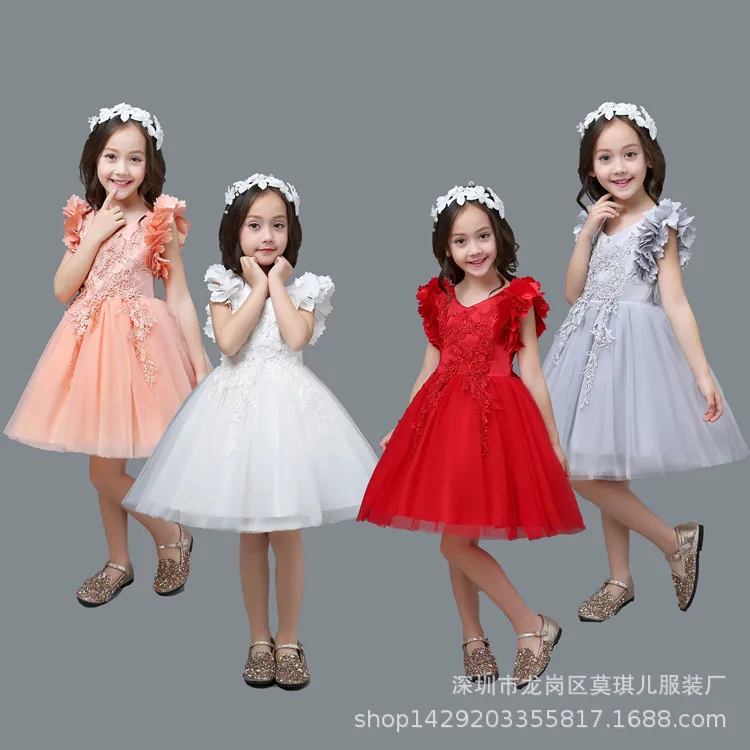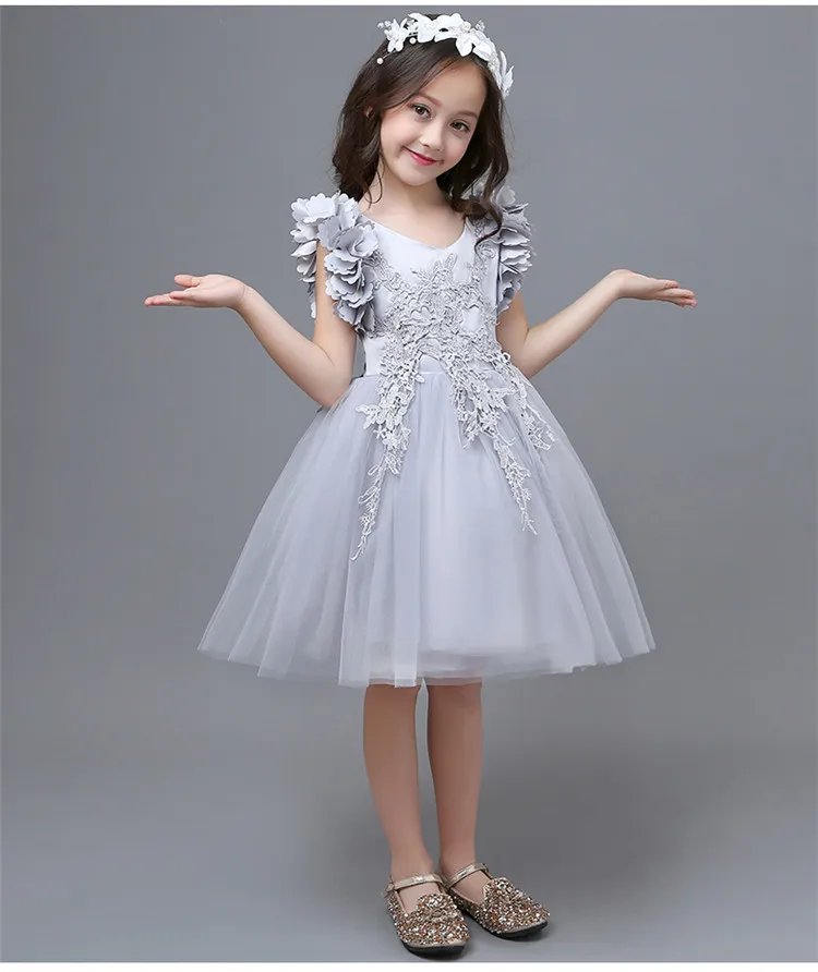 Платья принцессы с цветочным узором для девочек; Платье подружки невесты для свадебной вечеринки; Белое платье для маленьких девочек на Рождество, день рождения, вечеринку; Европейская одежда
