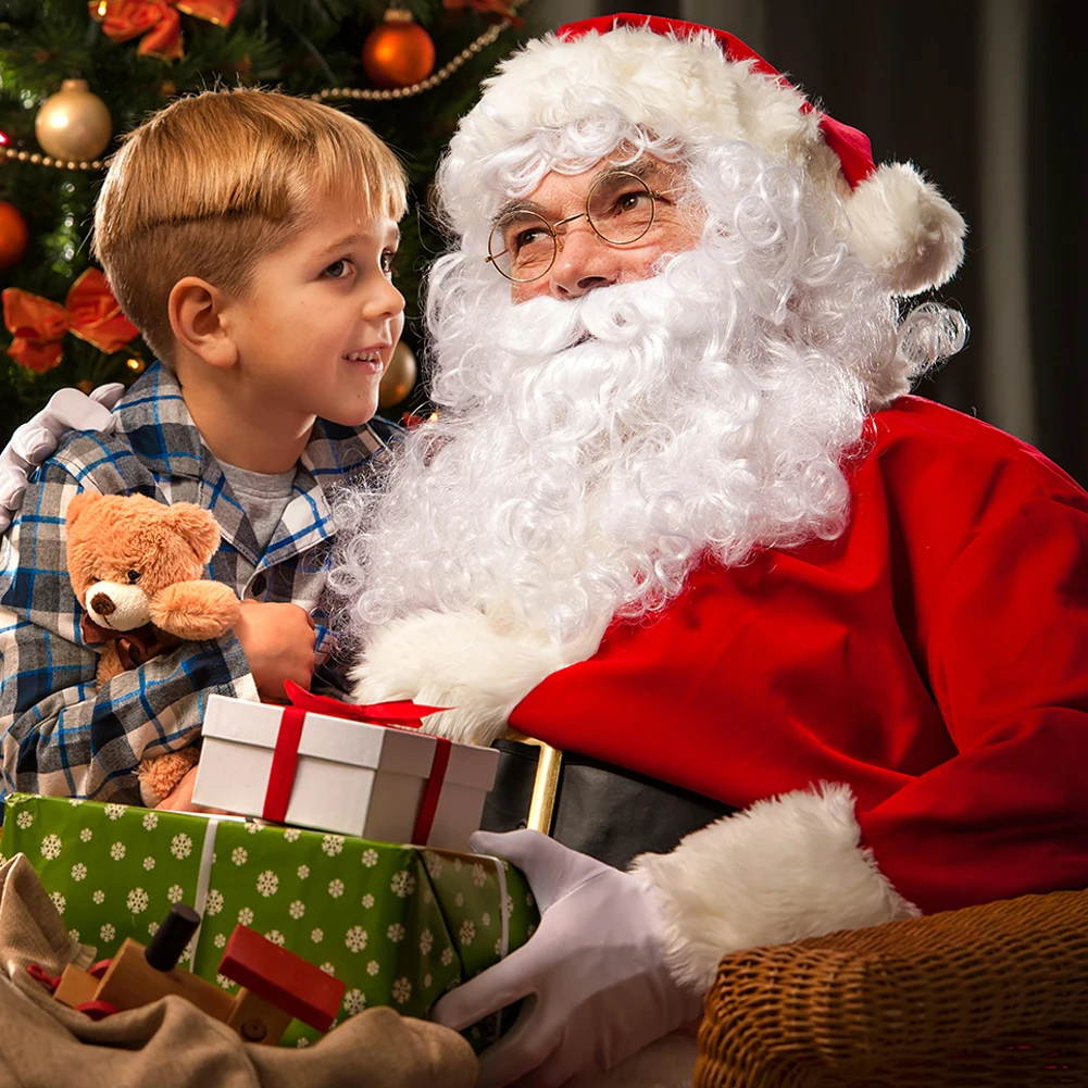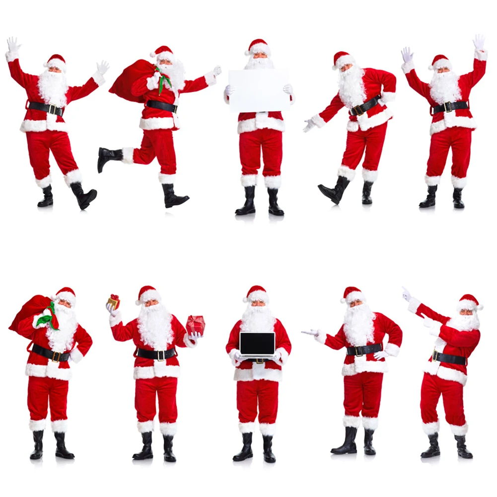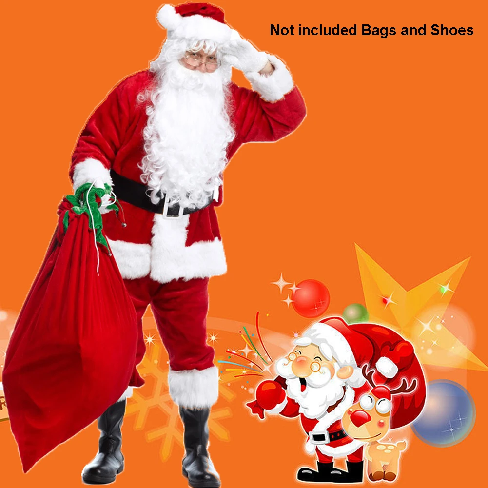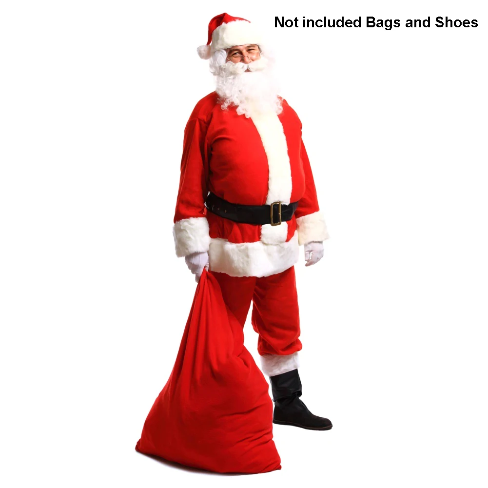 5 шт., костюм Санта Клауса, плюшевый Рождественский костюм для папы, рождественское нарядное платье, 100% полиэстер, бархат (шляпа + борода + топ + штаны + ремень)