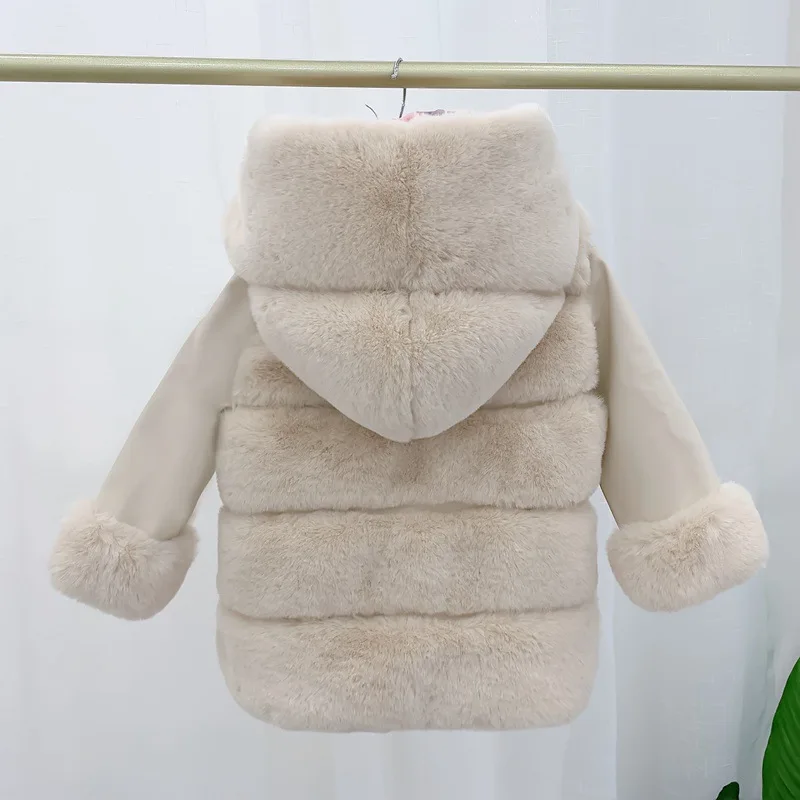 New Winter Girls Faux Fur Coat Thick Warm Rex Rabbit Fur Girls Boys Jackets And Coats Leather Parka Kids Outerwear