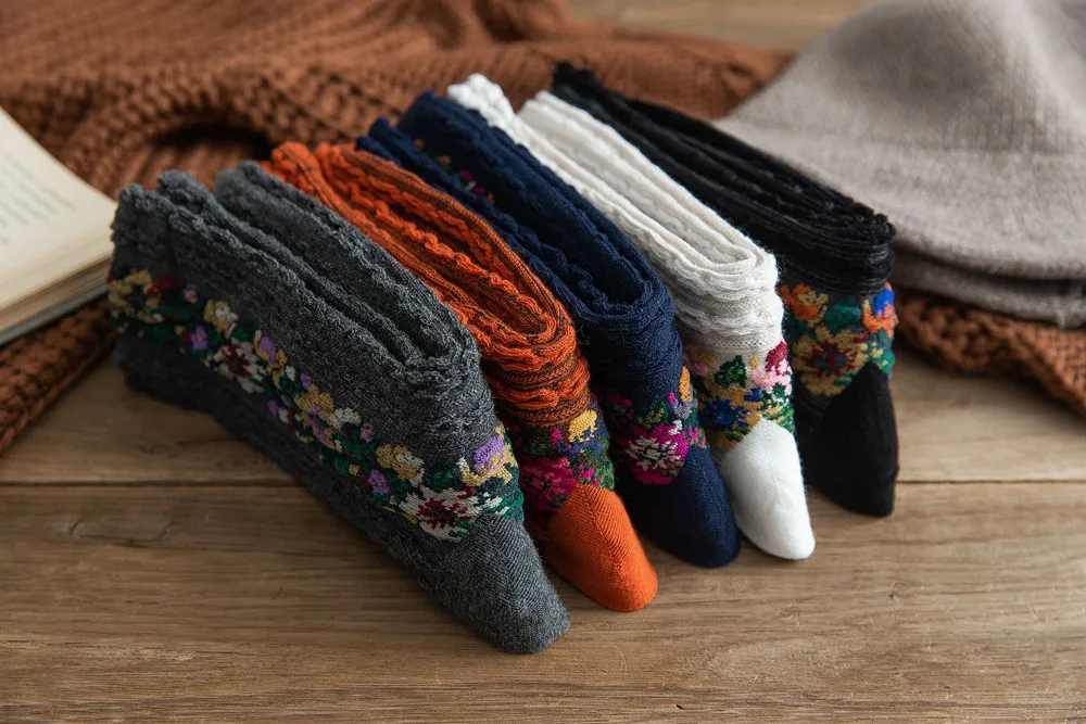 DOIAESKV новые модные женские носки, хлопковые, европейские, национальные, ветряные, с цветами, осенние и зимние, женские носки, теплые, милые, женские носки