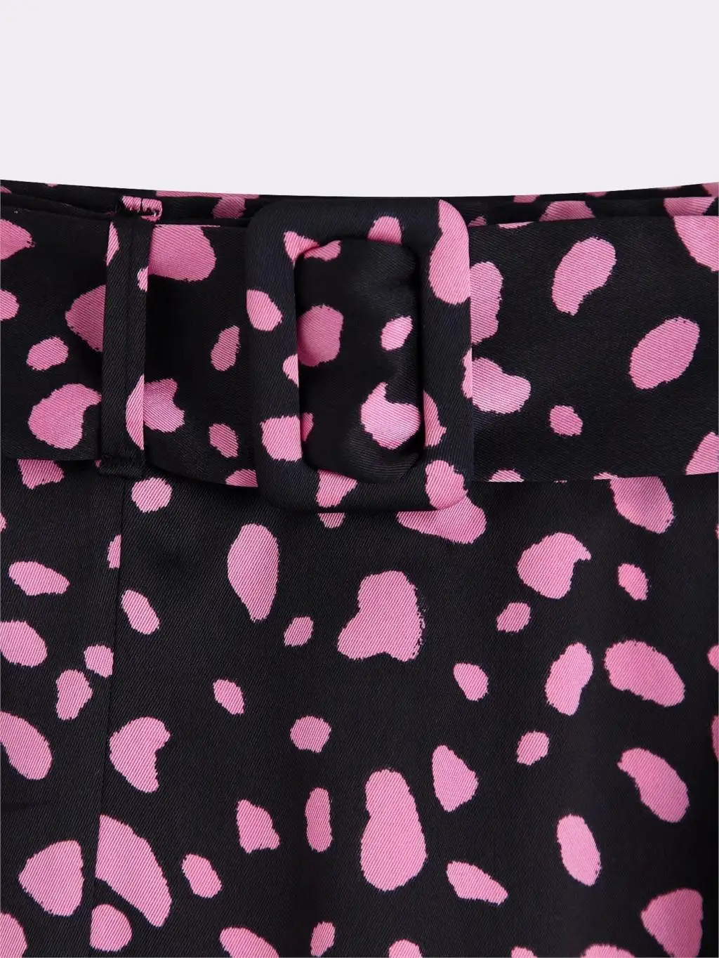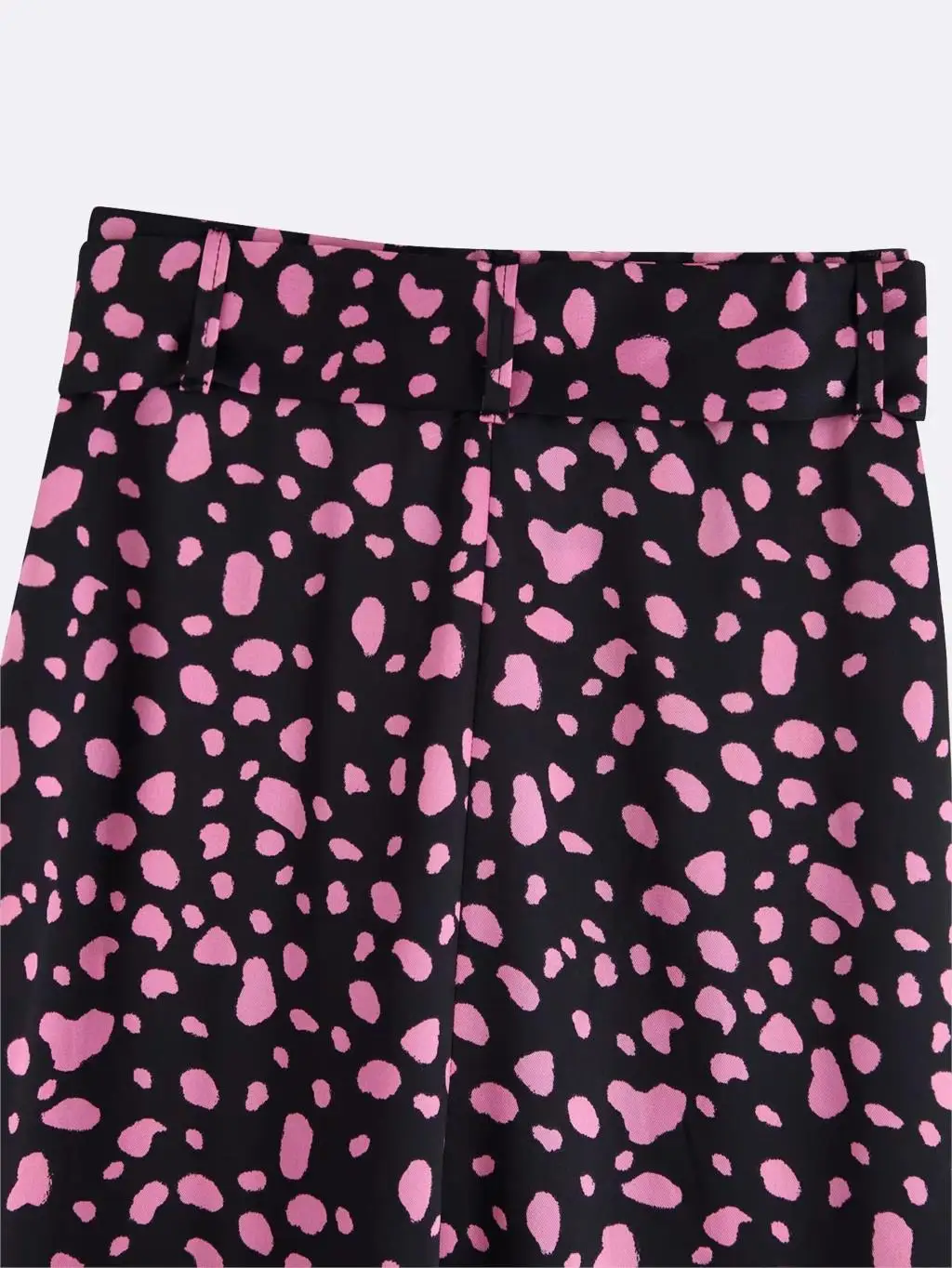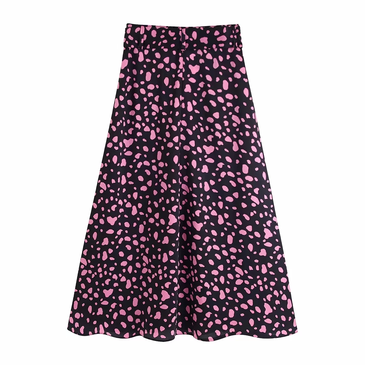 Женская юбка с высокой талией в розовый горошек, повседневная юбка миди с разрезом по бокам, Женская Зимняя юбка до середины икры, уличная юбка zora
