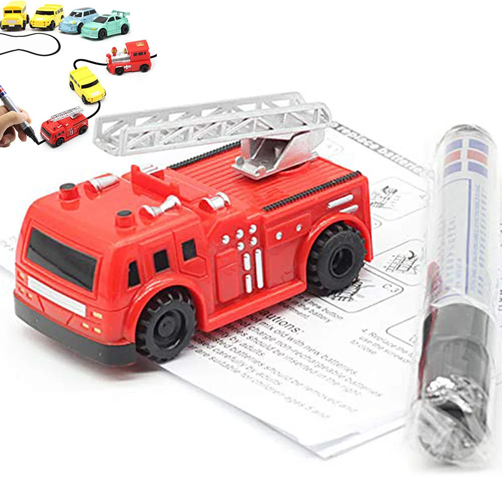 Автомобильная игрушка имеет оптический датчик, который считывает черную линию, нарисованную на белом листе бумаги.