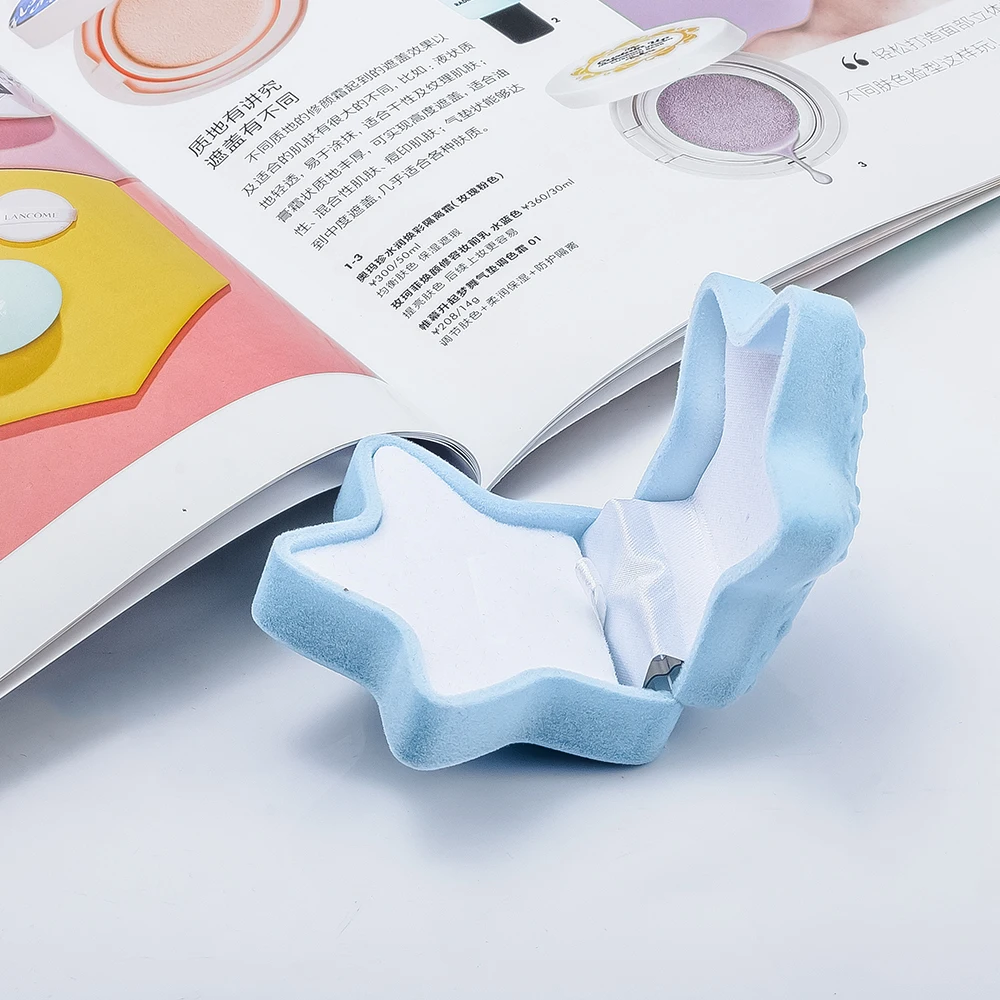 Шкатулка для ювелирных изделий, кольцо, серьги, коробки, синий, розовый цвет, узор в горошек, морская звезда, форма, Бархатная поверхность