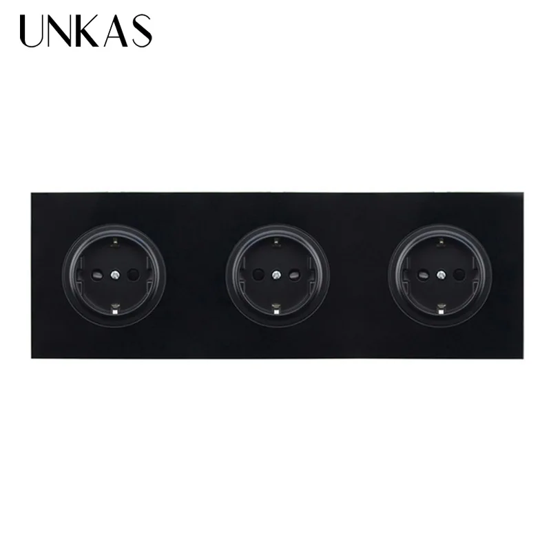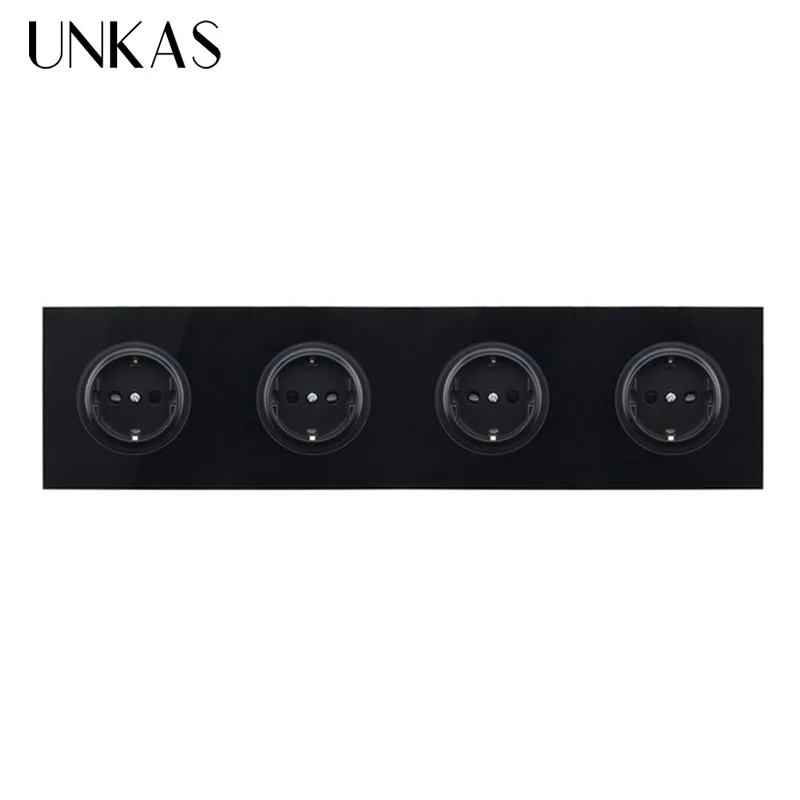 UNKAS заземленная с защитным замком для детей кристальная закаленная Золотая стеклянная панель 16А двойная розетка стандарта ЕС