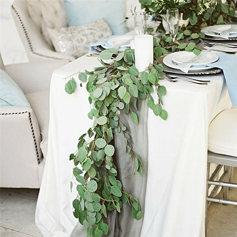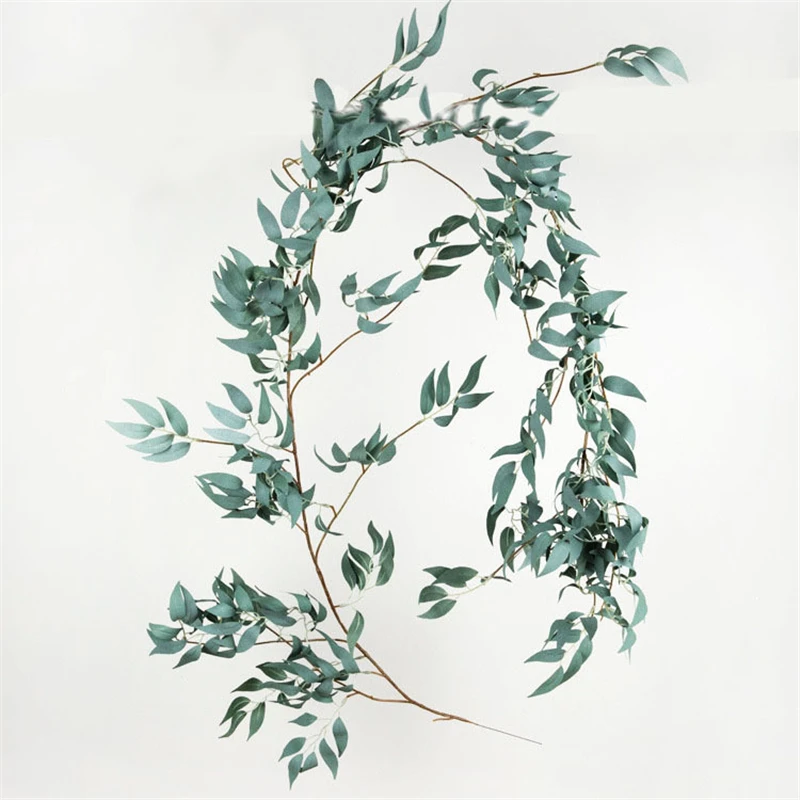 Искусственные гирлянды эвкалипта, длинные листья, растения, зелень, ива, домашний декор, Эвкалиптовый лист, растения, зелень, листва, 2 м