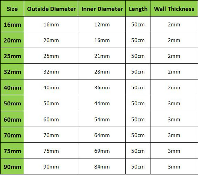 Название продукта: акриловая прозрачная труба Длина ленты: 50 см Размер: 16/20/25/32/40/50/60/70/75/90 мм Толщина стенки: 2 мм/3 мм
