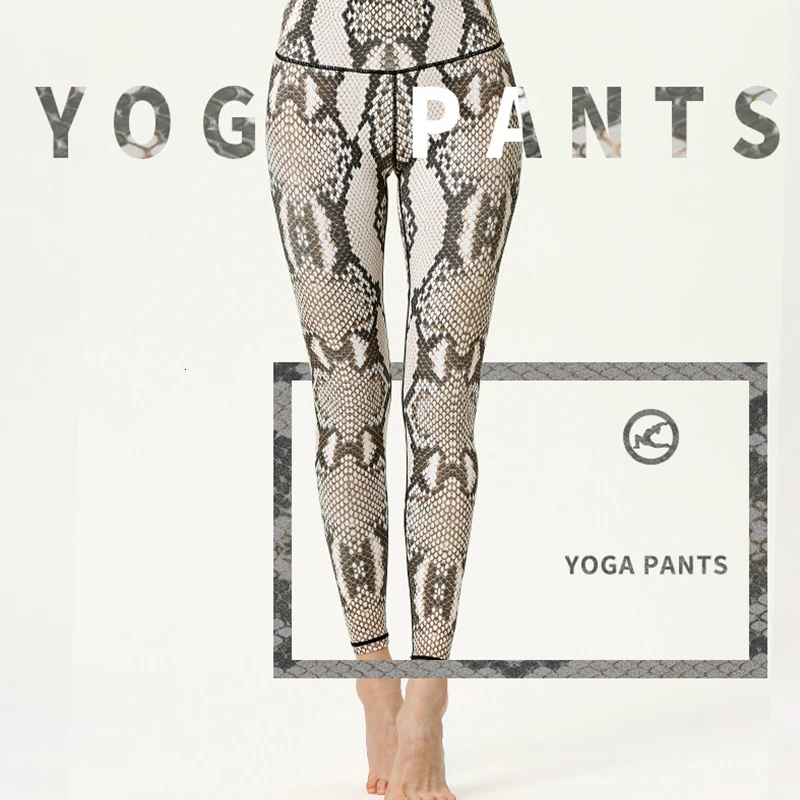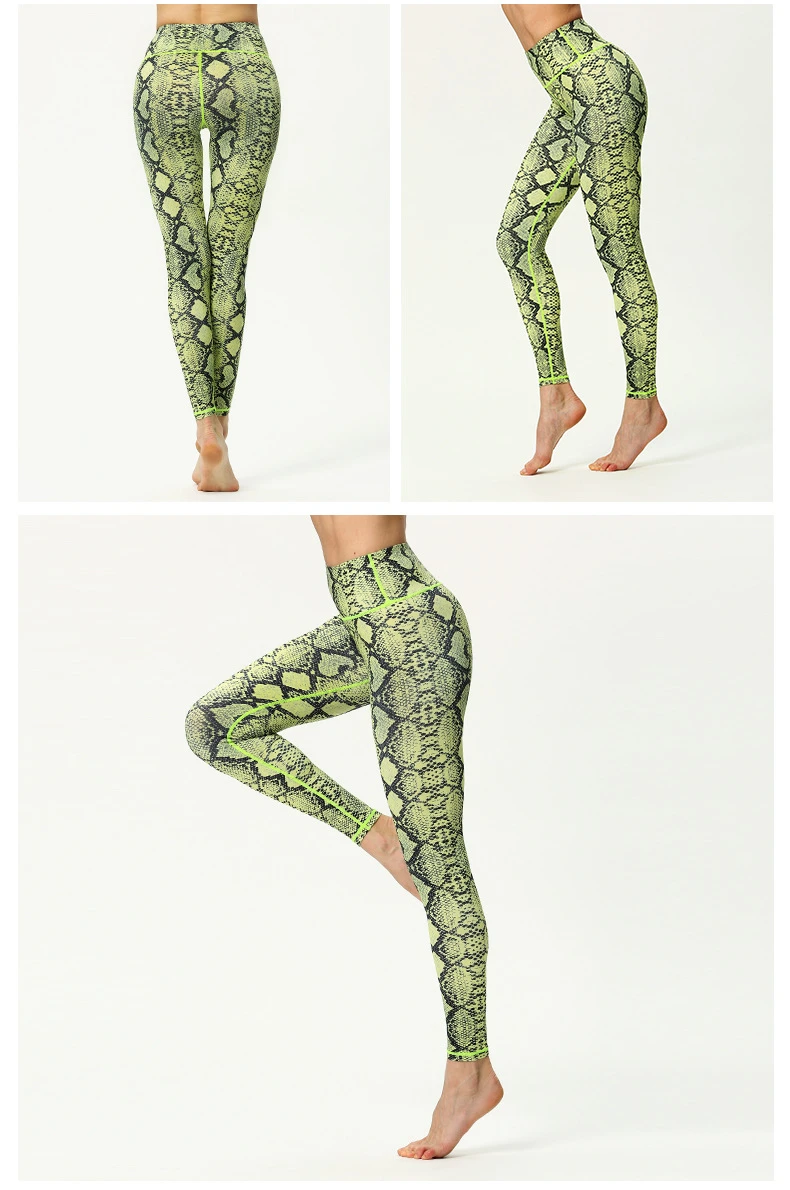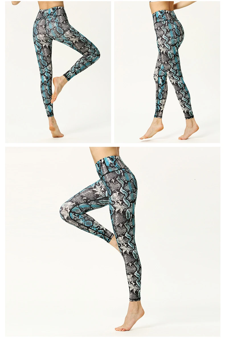 Женские Штаны Для Йоги со змеиным принтом, штаны для йоги, женские обтягивающие штаны с высокой талией, штаны для бодибилдинга, леггинсы длиной до щиколотки
