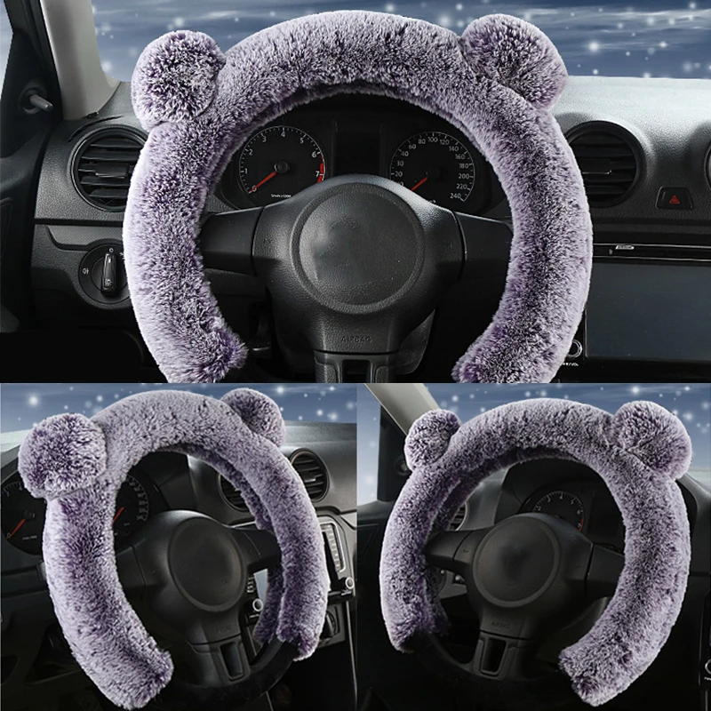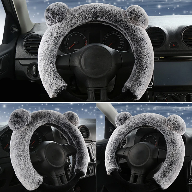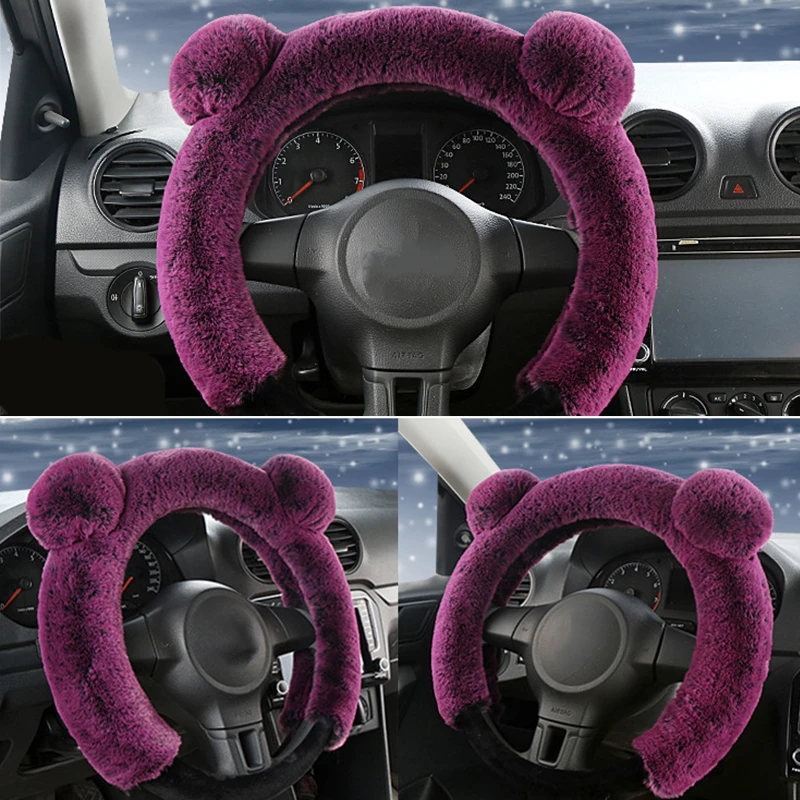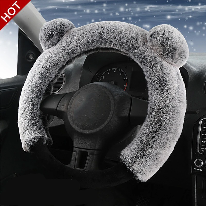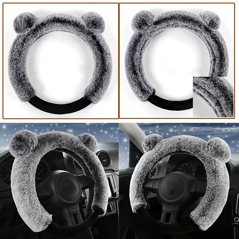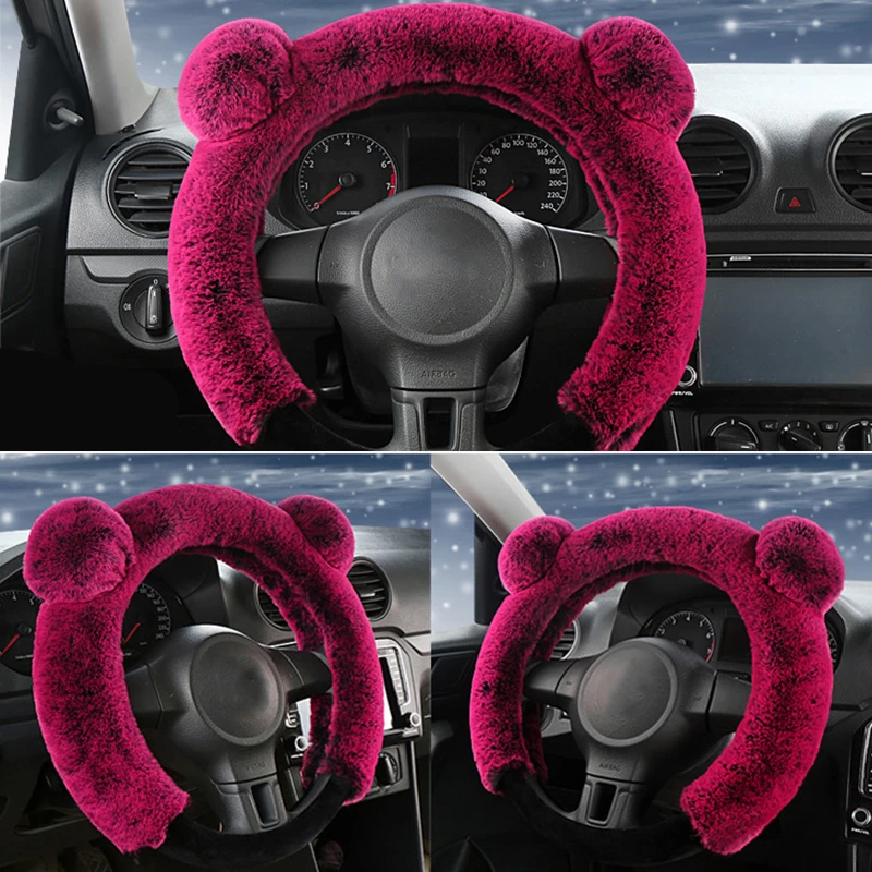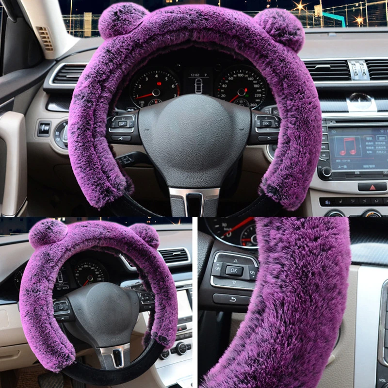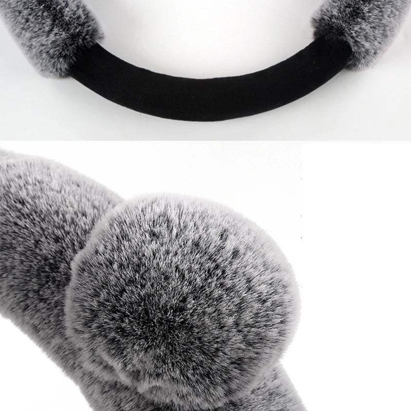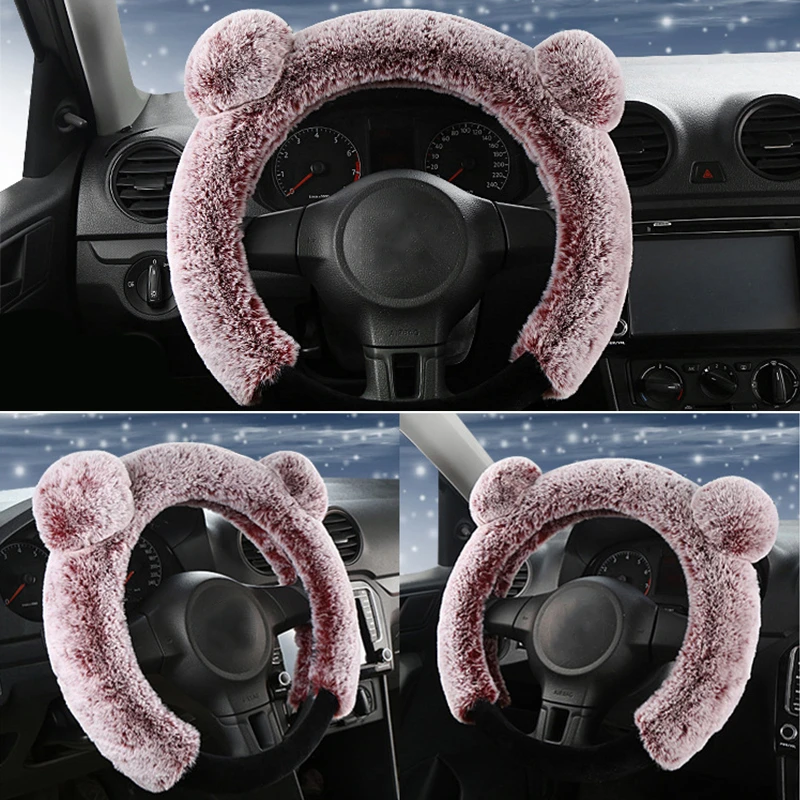 38 см плюшевый чехол рулевого колеса автомобиля милый зимний теплый нескользящий толстый Имитация меха кролика рекс авто чехол на руль