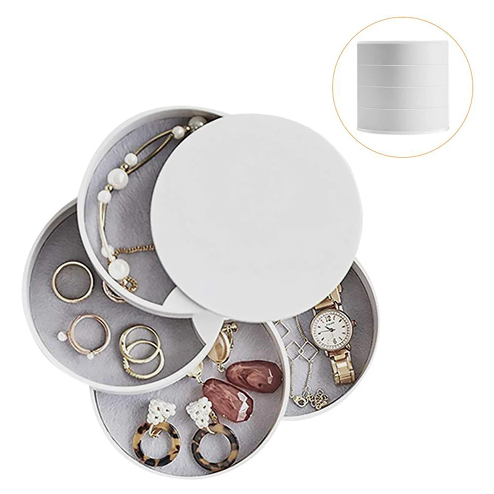 Specification Name: Jewelry box with lid Color: black,white,pink Material: ABS+Resin Capacity: 4 layers Scope of application: jewelry Storage scene: study, bedroom, drawer, living room, bathroom, storage room etc. Features 1.4 LAYERS DETACHABLE DESIGN: Convenient to install this cosmetic storage organizer box,can be washable and disassemble easily. 2.360 DEGREE ROTATING DESIGN: 360 degree rotatable design, enables easy access to all of your makeup and Jewelry. 3.APPLICATION: Suitable for organize your earrings, rings, necklaces,bracelets, lipsticks, makeup,car keys, other small supplies, and more. 4.PERFECT GIFT: Excellent Gift to girlfriend, wife, daughter, colleagues, friends and mom Package Include 1 rotating jewelry box