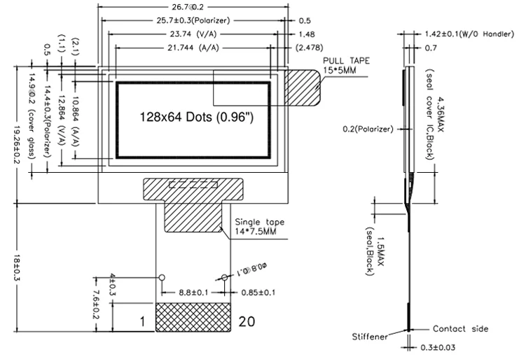 Новый и оригинальный oled-дисплей 0,96 дюймов 20 контактов 128*64 Драйвер SSD1306