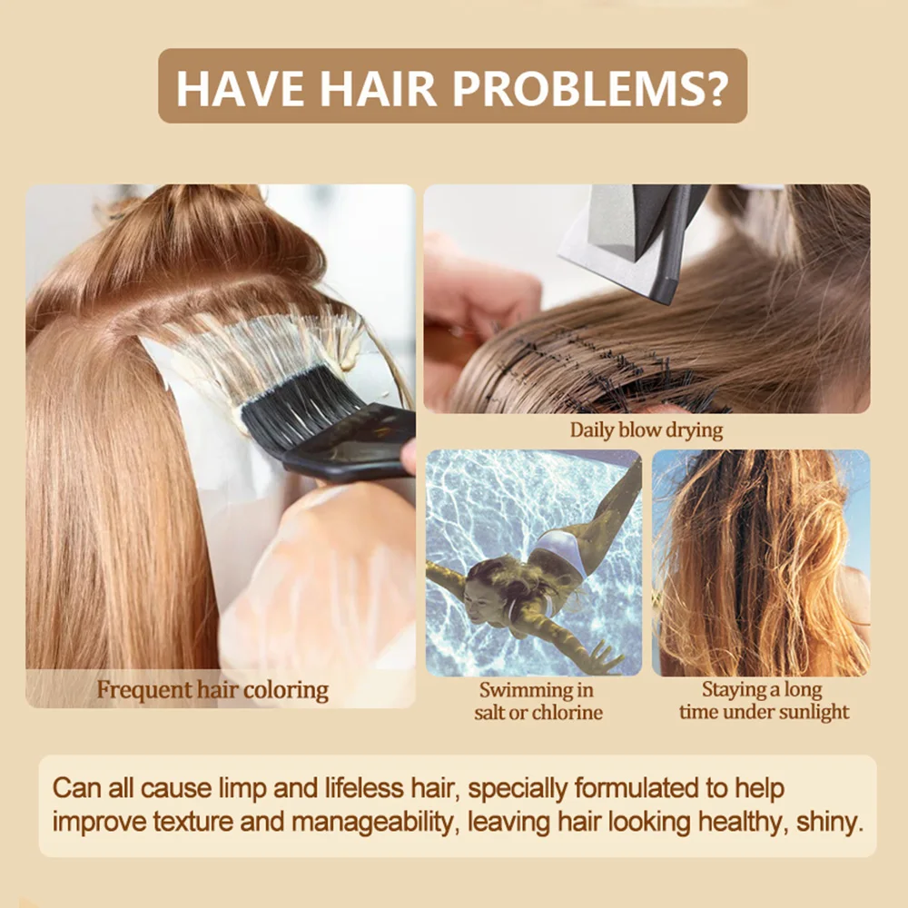 Нанесите маску для волос на волосы, не прикасайтесь к коже головы, постоянно массируйте волосы в течение 2-5 минут