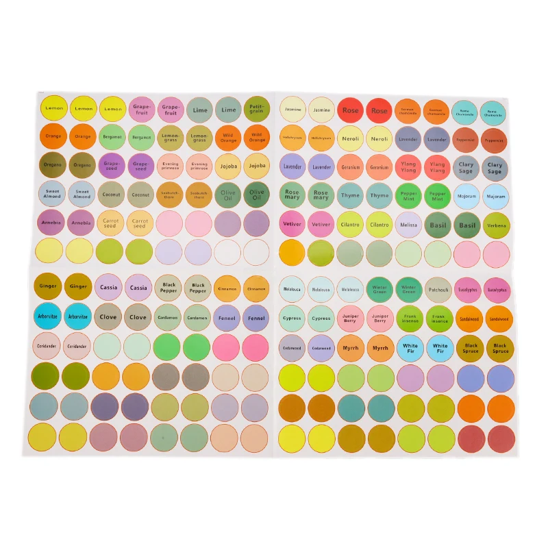 Круглая наклейка диаметром 13 мм подходит практически для всех крышек эфирного масла.