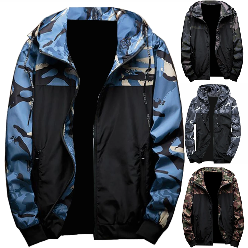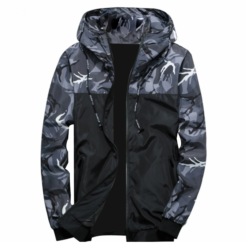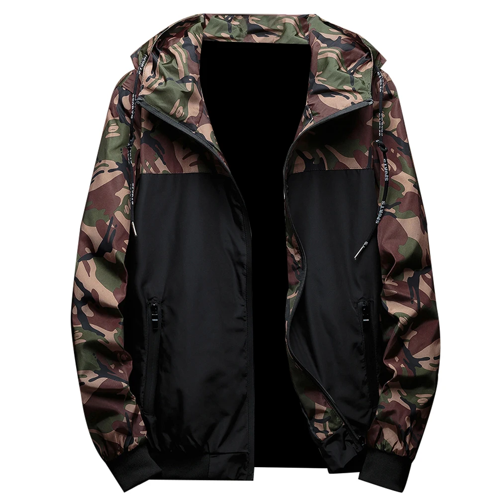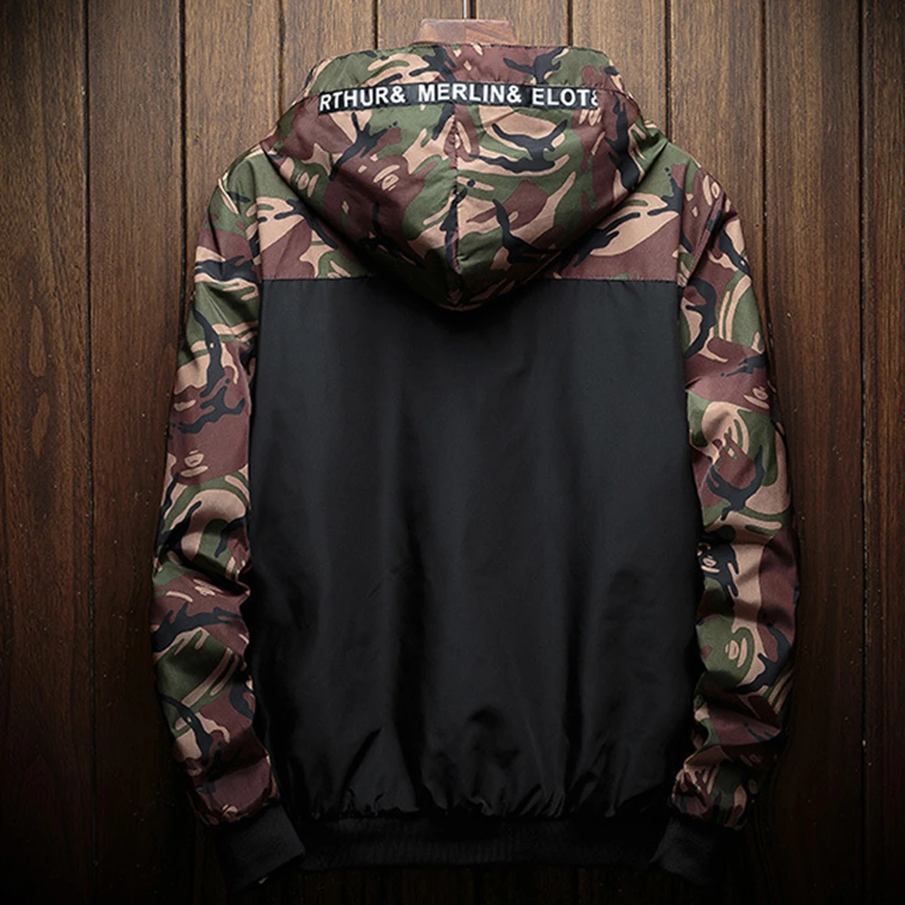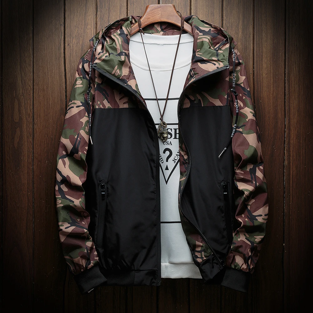 Мужская куртка-бомбер с камуфляжным принтом, повседневная куртка на молнии с капюшоном