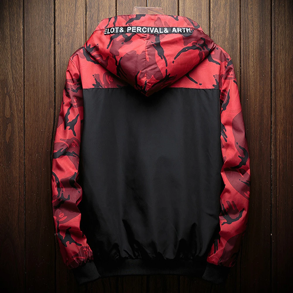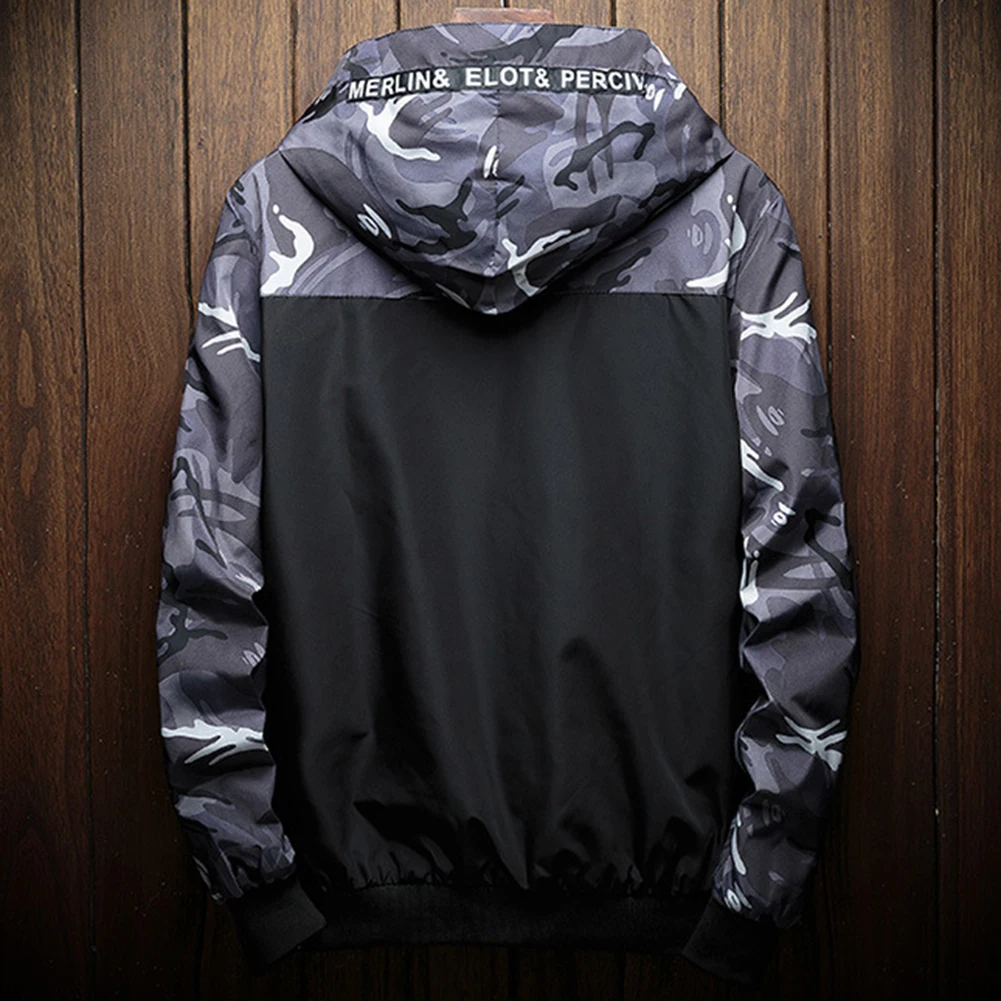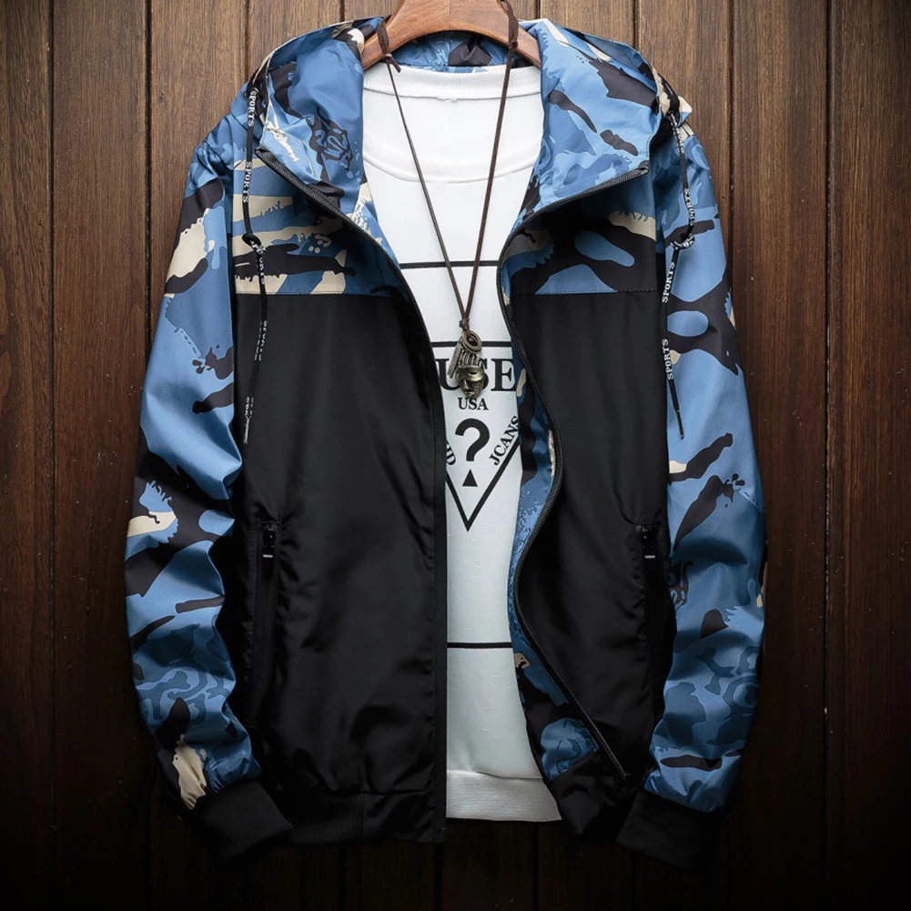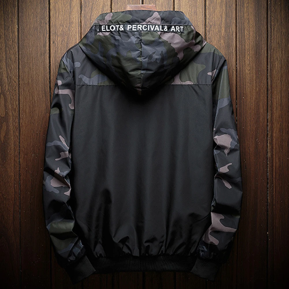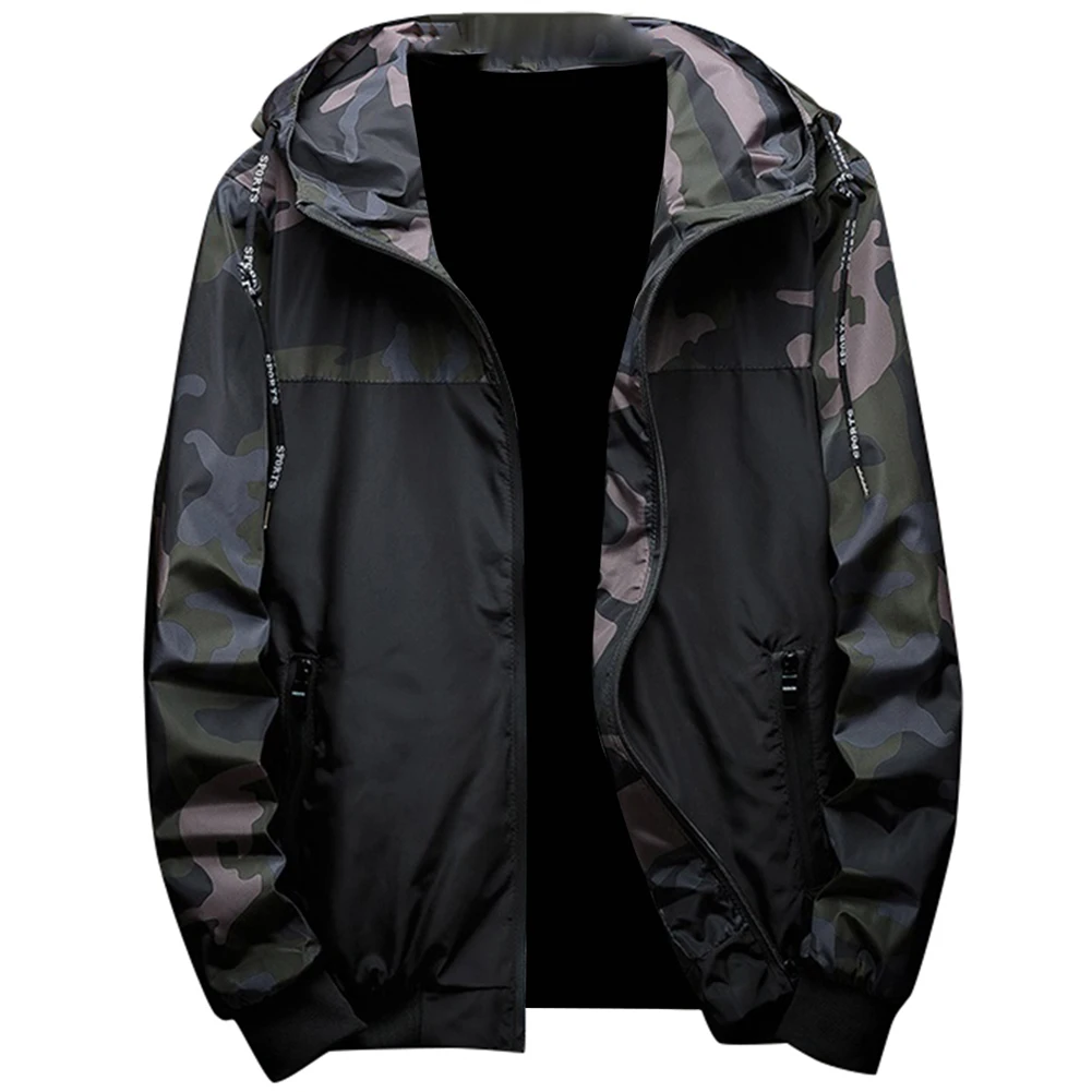 Мужская куртка-бомбер с камуфляжным принтом, повседневная куртка на молнии с капюшоном