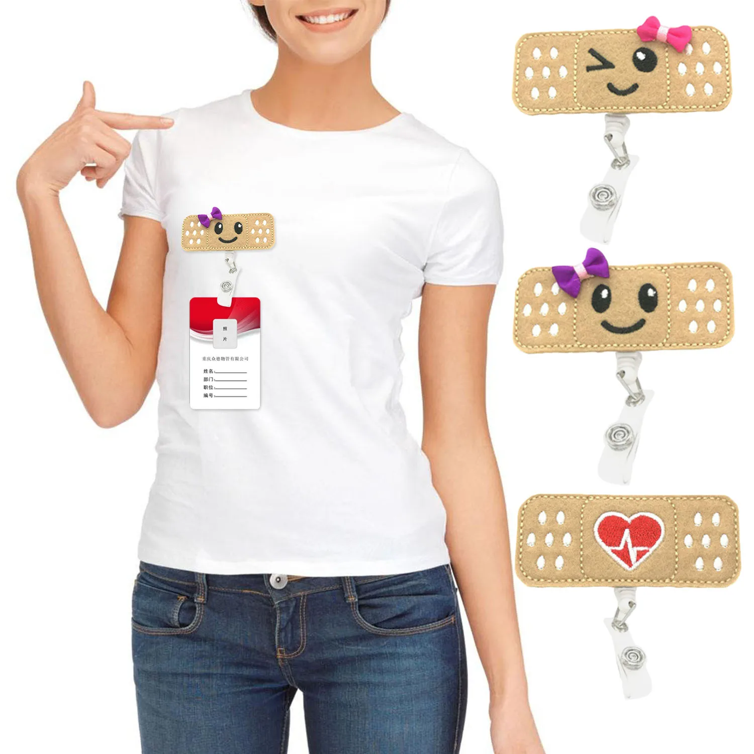 Очень мило:Если вы являетесь медсестрами, студентами или учителями, то вы знаете, насколько важно произвести хорошее первое впечатление. Катушка бейджа очень веселая, имеет форму бандажа со смайликом или очень милым дизайном красного сердца, который заставит любого улыбнуться.