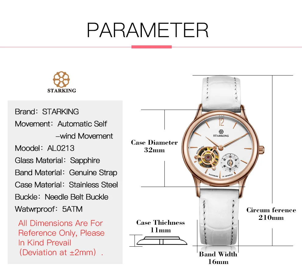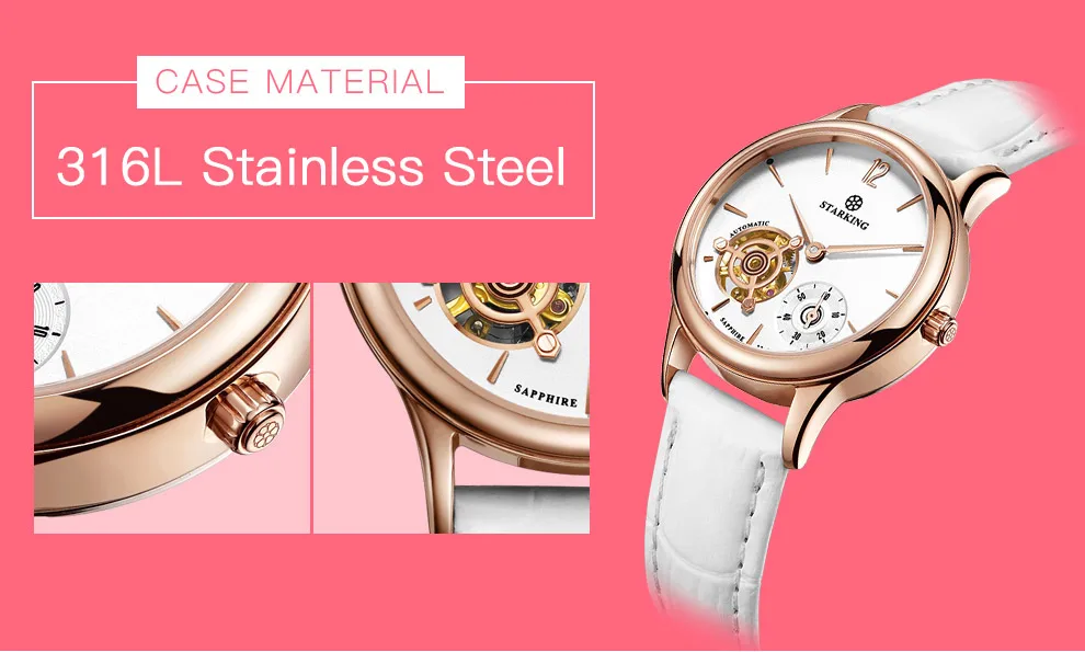 STARKING механические Женские наручные часы с красным кожаным каркасом, аналоговые автоматические часы от известного бренда, Часы Relogio Feminino