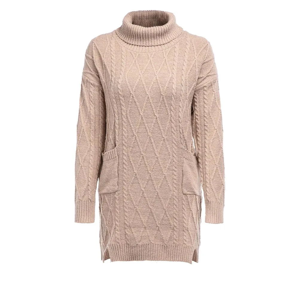 Женское зимнее трикотажное платье с высоким воротом, теплые платья с длинным рукавом и карманами, Повседневное платье-свитер # EP