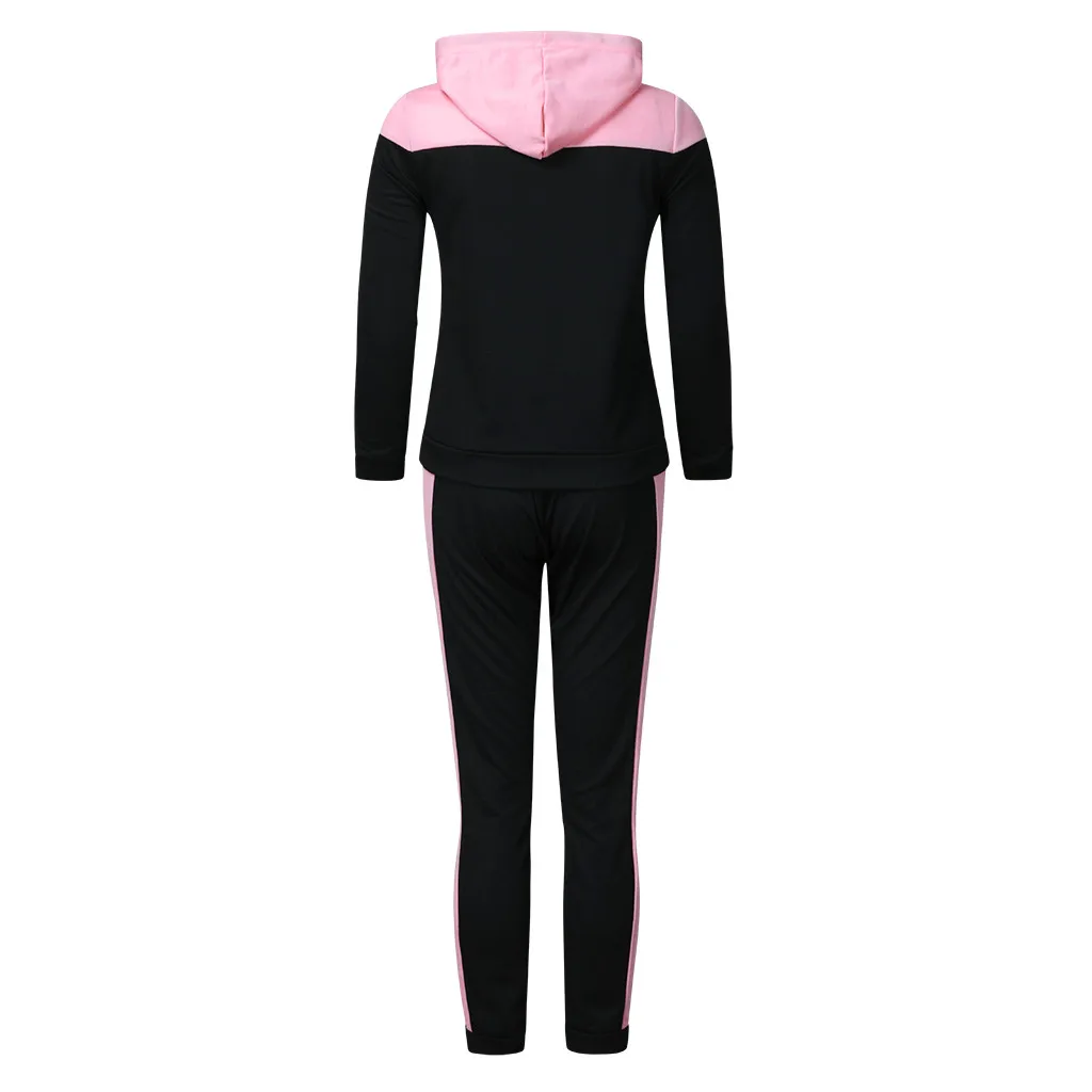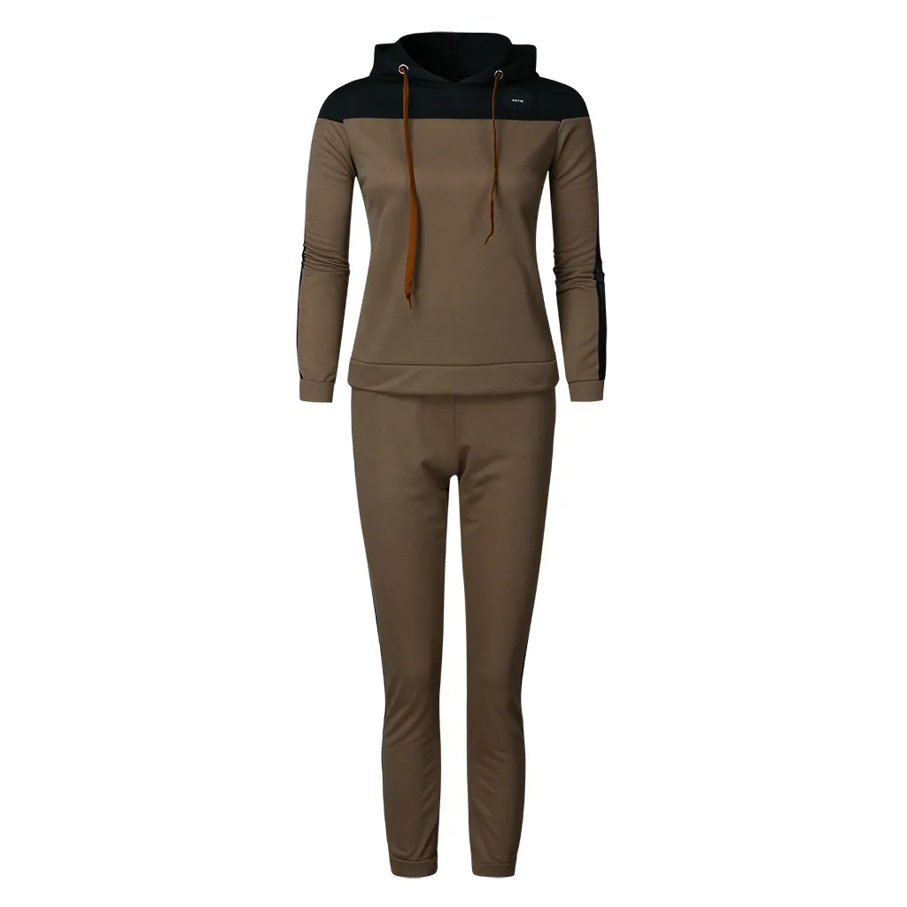 Women Solid Color Hooded Sweatshirt and pant Tracksuit Sport Suit