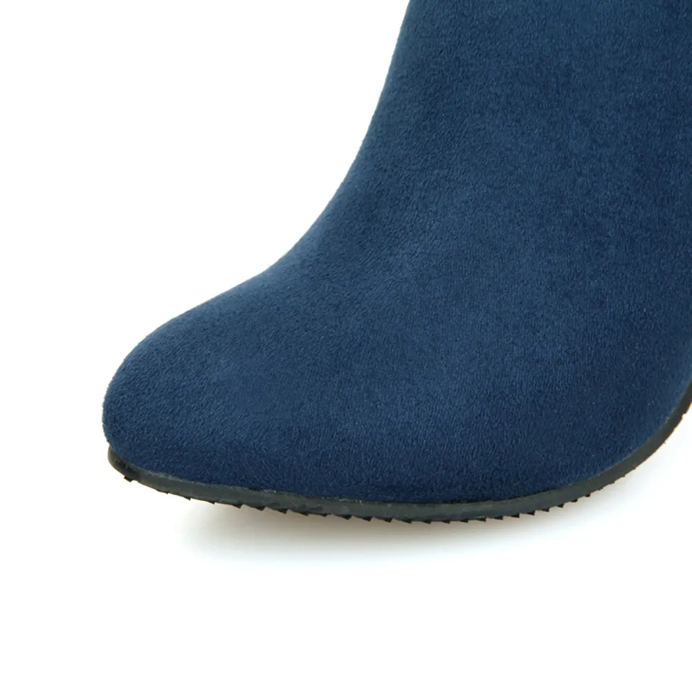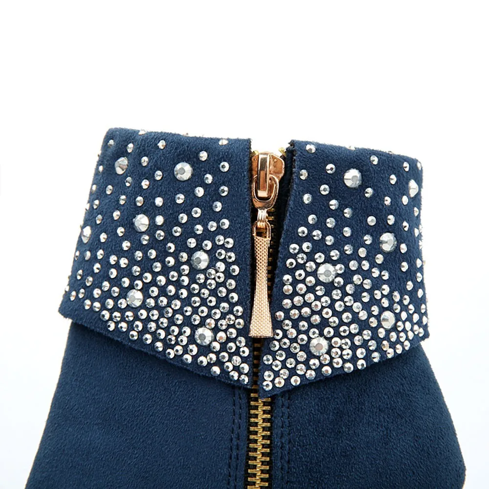 Женские Теплые ботильоны из флока на молнии и толстом квадратном каблуке с кристаллами; Обувь с круглым носком
