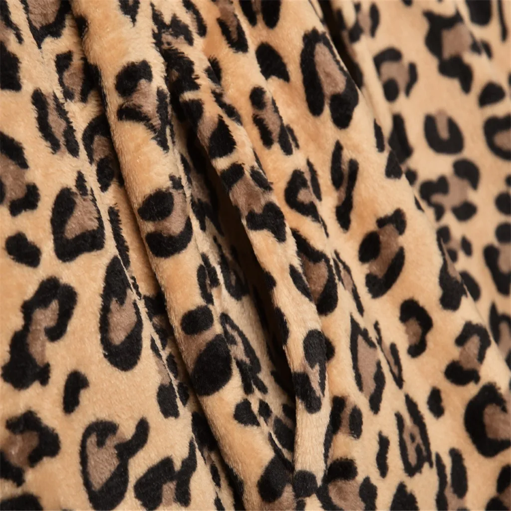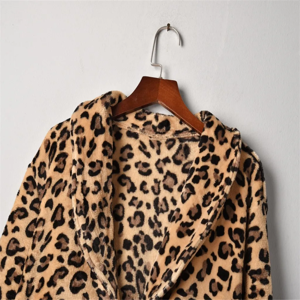 Женская леопардовая теплая зимняя одежда оверсайз из искусственного меха с карманами